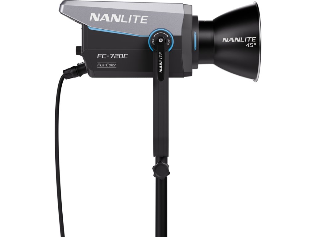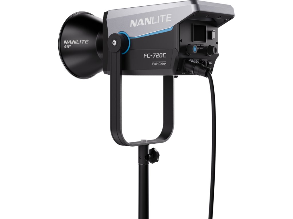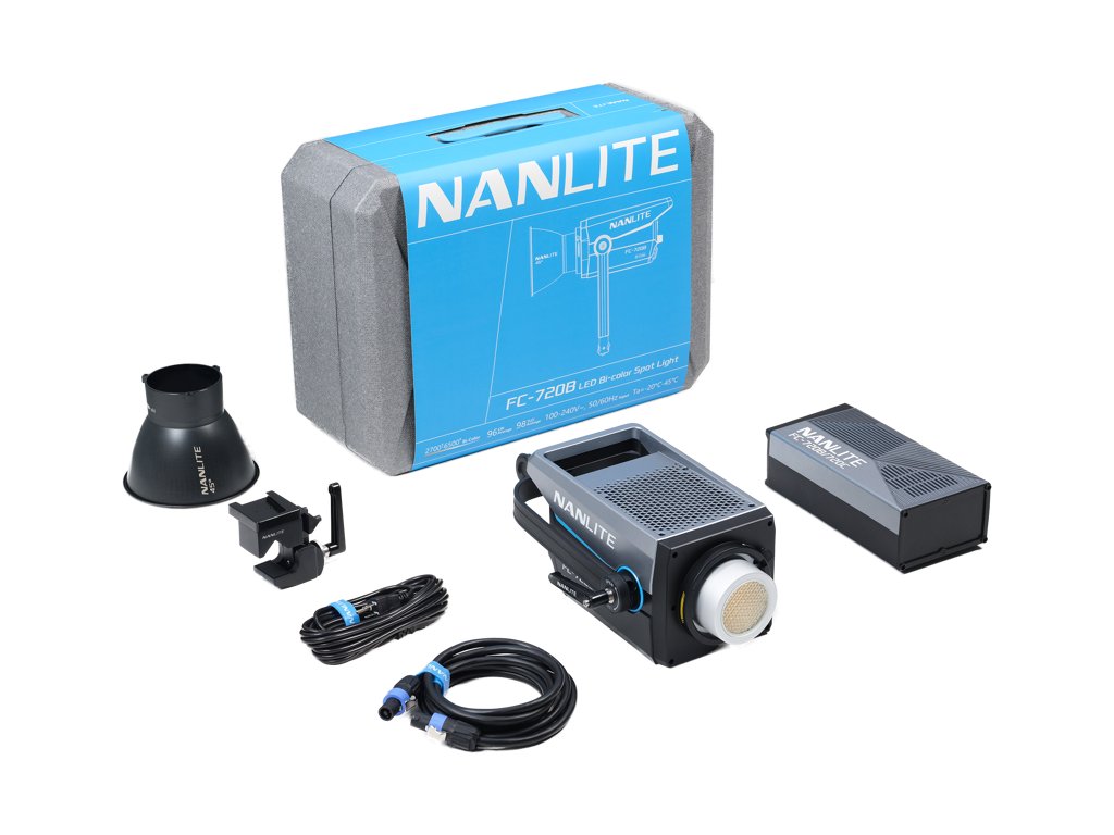 LED RGBW reflektor Nanlite FC-720CKromě širokého rozsahu 2 400 K–12 000 K nabízí model FC-720C také nastavení zelené/magenta ±150 pro spolehlivé sladění ve smíšeném osvětlení. Nabízí pět režimů osvětlení (CCT, HSI, RGBW, Gel a Effect) s 460 přednastavenými gely a 15 vestavěnými efekty pro rychlé kreativní nastavení.Klíčové vlastnosti750W LED reflektorVýkon: 11 400 luxů ve vzdálenosti 3 m (5600 K) s 45° reflektoremCCT: 2400 K–12 000 K±150 nastavení zelené/magentaRežimy: CCT, HSI, RGBW, Gel a EfektRežim Gel s 460 předvolbami15 vestavěných efektůPlynulé stmívání 0–100 % v krocích po 0,1 %Integrované ovládání s 2palcovým displejemBezdrátové ovládání přes aplikaci NANLINK App 2.0 s párováním NFC5pinový XLR DMX IN a OUT s podporou DMX/RDM Čtyři režimy ventilátoru: Inteligentní, plná rychlost, nízká rychlost, vypnuto (inteligentní režim přibližně 26 dB(A))Bowensův držák a podpora deštníkuDržák podporuje naklonění/otáčení o 360°Hmotnost (svítidlo): 4,43 kgLED RGBW reflektor FC-720C: FC-720C je navržen pro rychlé scény a díky ovládání pomocí aplikace, rychlému párování a integraci DMX kompatibilní s konzolí umožňuje snadno udržet identický vzhled více světel. Díky držáku Bowens a robustnímu třmenu můžete rychle tvarovat a nasměrovat světlo pomocí modifikátorů, které již vlastníte, od softboxů po projekční nástavce. Obsah baleníNanlite FC-720CNapájecí zdroj45° reflektor (RF-BM-45)Rychloupínací svorkaDC připojovací kabel (3 m)Napájecí kabel AC (6 m)Uživatelská příručkaPouzdro na přenášeníDoplňkové parametry