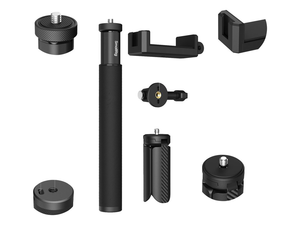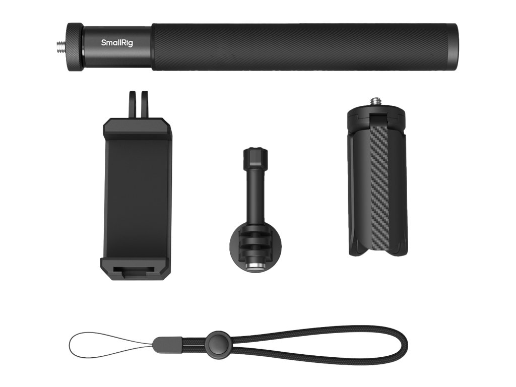 SmallRig 5403 Selfie tyč pro akční kamery  SmallRig 5403 Selfie tyč s výsuvnou délkou až 95 cm a skládací délkou pouhých 20 cm je dodávána s několika doplňky pro podporu chytrých telefonů a akčních kamer, jako jsou GoPro HERO13 Black, insta360 X5, DJI Action 5 Pro a AKASO.   Zejména při použití Insta360 X4 můžete tyč z fotografií a videí vyjmout.  Mezi příslušenstvím je řemínek na zápěstí, který pomáhá udržet tuto tyč a fotoaparát bezpečně na vašem zápěstí a zajišťuje tak bezpečnost  Stativ, který má na horní straně jeden šroub 1/4"-20, připevníte k této tyči prostřednictvím jejího spodního otvoru se závitem 1/4"-20, abyste mohli pořizovat skupinové fotografie, pevné záběry atd.Balení obsahuje:Selfie StickDržák na akční kameruStativSvorka na smartphoneZápěstní řemínekDoporučuji.