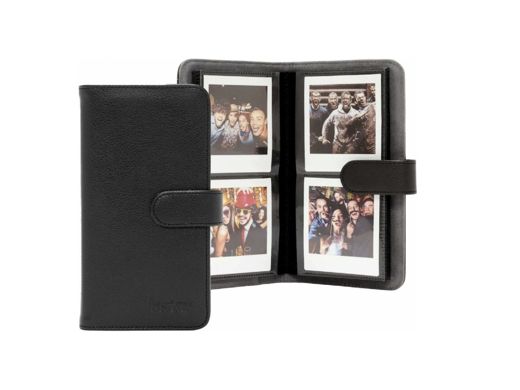 Fotoalbum z polyuretanové kůže, s polstrovaným předním krytem, je k dispozici v pěti různých barvách, pro sladění s řadou fotoaparátů Instax Mini 12.