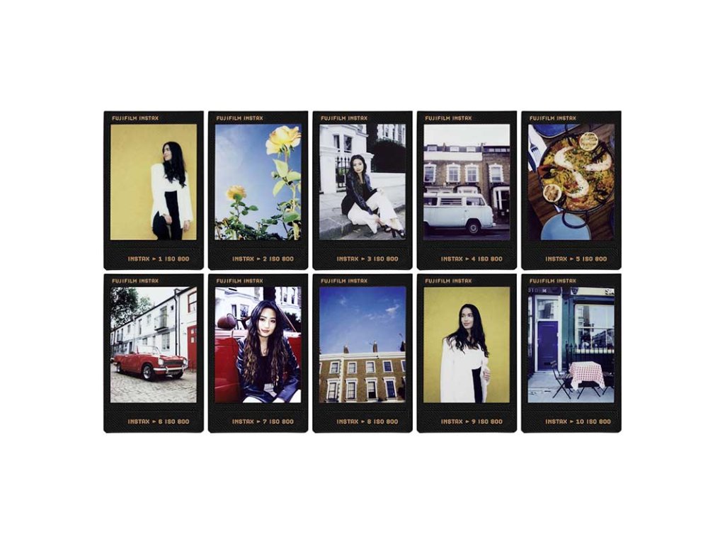 Instax Mini film Conatct Sheet je speciální edice filmu pro instantní fotoaparáty INSTAX MINI, která vám umožní vytvořit jedinečné fotografie v retro designu. Každá kazeta obsahuje 10 lesklých snímků o rozměrech 46 x 62 mm s oranžovým textem v klasickém černém rámečku.