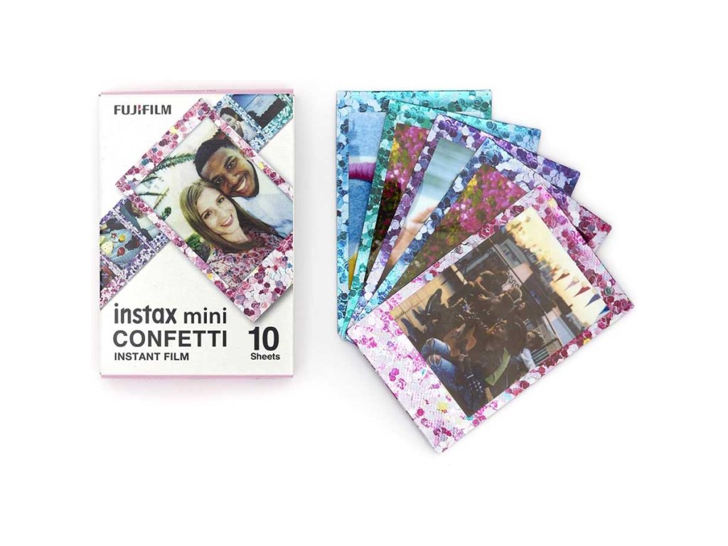 Doplňte svou sbírku snímků o balení instantního filmu Instax Mini CONFETTI a vytvořte snímky se zábavným, třpytivým okrajem. Film nabízí živé barvy a přirozené odstíny pleti. Lze jej použít ve...