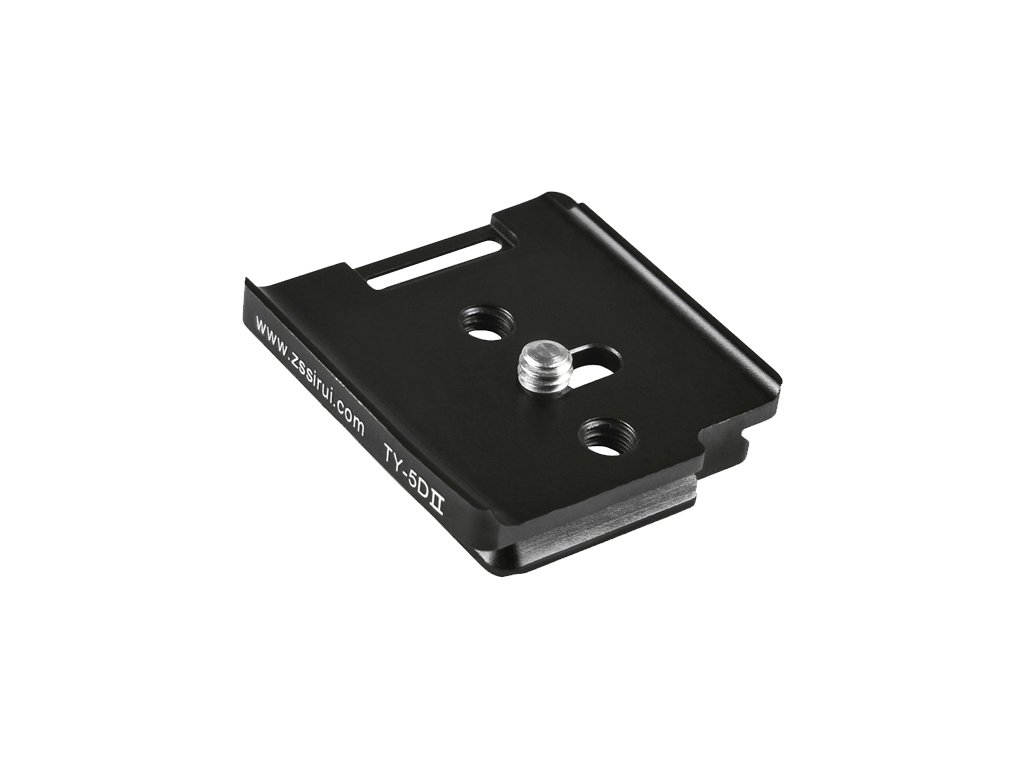 Rychloupínací destička **Sirui TY-5D II** je navržena speciálně pro digitální fotoaparáty **Canon EOS 5D Mark II**. Tvar přesně odpovídá příslušným modelům tak, aby stabilizoval fotoaparát během fotografování ve vertikální orientaci nebo při naklápění hlavy.Rychloupínací destička Sirui TY-5D II je vyrobena z kované **hliníkové slitiny**. Technika kování vytváří kovy s vysokou hustotou, které mají mnohem větší pevnost než při použití metody odlévaní.Destička disponuje standardním **závitovým šroubem 1/4"**, který umožňuje upevnění k digitálním fotoaparátům. Je opatřena pogumovaným povrchem, aby se zabránilo náhodnému sklouznutí a je **kompatibilní se systémem Arca-Swiss** (např. se stativovými hlavami Sirui).**Technické parametry:** Materiál: hliník Hmotnost: 28.5 g Rozměry: 48 x 45.5 x 11 mmDoplňkové parametry