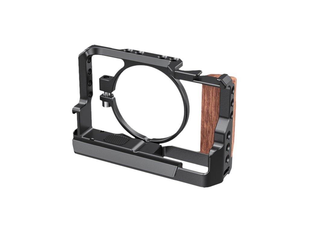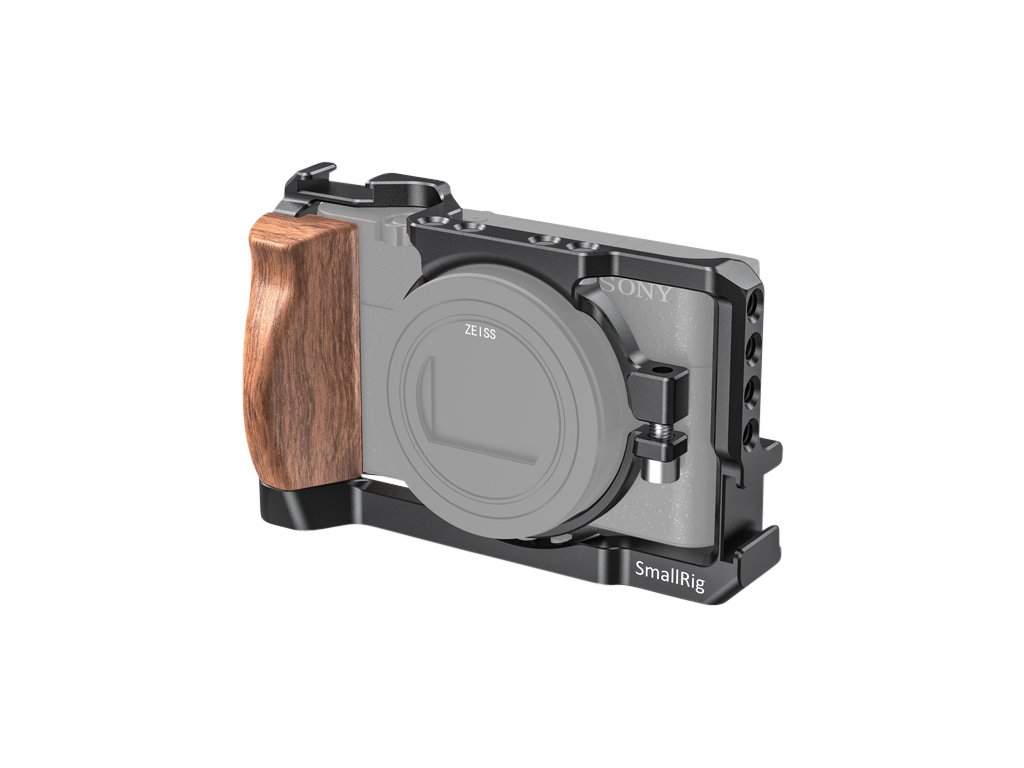 Klec SMALLRIG 2434 pro Sony RX100 VII a RX100 VIKlec se upevňuje kolem držáku objektivu pomocí šroubu M5, který zachovává přístup k bateriovým dvířkům.Více závitů 1/4"-20 pro příslušenství kolem klece umožňuje upevnit horní rukojeť SmallRig 1984, rameno Magic Arm 2070 pro monitor a další příslušenství související s fotoaparátem.Tvarově přiléhavá klec je na horní a levé straně vybavena studenou botkou pro mikrofon nebo světlo, což vloggerům výrazně usnadňuje práci.Vybavena dřevěnou rukojetí a zvětšuje prostor mezi rukojetí a objektivem, což zajišťuje pohodlí při držení.Spodní část je vybavena šesti stativovými závity 1/4"-20, které umožňují připevnit stativ, QR destičku a rukojeť, aniž by překážely bateriovému prostoru.Balení obsahuje:1 x klec2 x šestihranný klíčDoplňkové parametry