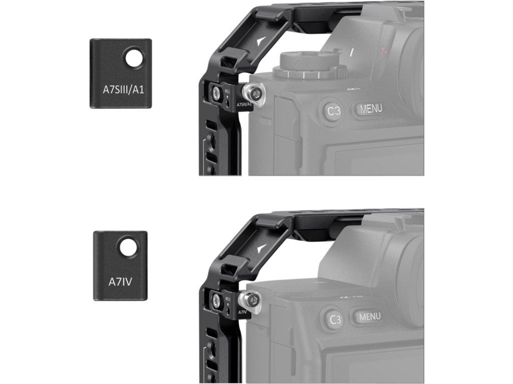 SmallRig 3669 Advanced Kit pro Sony A7R V / A7 IV / A7S III / A7 VVrchní rukojeť je pohodlná a umožňuje snadné přenášení i při záběru z nízkého úhlu.Boční rukojeť je vybavena silikonovou vložkou pro lepší úchop a stabilnější fotografování oběma rukama.Otvory se závitem 1/4"-20, polohovací otvory ARRI 3/8"-16, studené boty a kolejnice NATO podporují držák monitoru SmallRig 2294, mikrofony, LED světla, držák monitoru 2903 a příslušenství NATO.Svorka kabelu HDMI, upevněná na levé straně klece pomocí jednoho šroubu 1/4"-20 a dvou polohovacích kolíků, zabraňuje vychýlení a upevňuje kabely pomocí šroubu s palcem, čímž chrání rozhraní a zajišťuje stabilitu přenosu signálu.Díky otvorům na obou stranách klece je navíc možné připevnit popruhy na ruce.Klec je dodávána se zabudovaným magnetickým plochým šroubovákem & šestihranným klíčem, který usnadňuje demontáž a montáž.Poznámka:Chcete-li použít boční zámek klece, odstraňte nejprve dělicí kroužek na levé straně fotoaparátu.Kompatibilita:Sony A7R VSony A7 IVSony A7S IIISony A7 VBalení obsahuje:1 x klec2 x uzamykatelná boční deska1 x svorka pro kabel HDMI 30001 x polohovací rukojeť ARRI 21651 x boční rukojeť 2425Doplňkové parametry