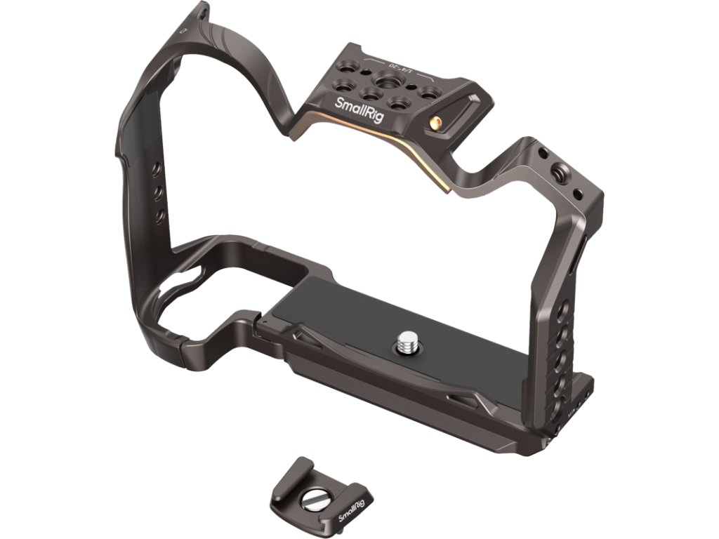 SmallRig 4521 Night Eagle Cage pro Nikon Z 6IIIPoužívá tříbodový uzamykací systém, který zajišťuje fotoaparát Nikon Z 6III pomocí spodního šroubu 1/4"-20 a dvou šroubů M2,5 na obou stranách, zatímco vestavěné silikonové podložky zabraňují poškrábání fotoaparátu.Poskytuje volný přístup k tlačítkům, slotům na karty, výklopným obrazovkám a přihrádkám na baterie.Odnímatelný držák studené patice je ve spodní části vybaven polohovacími kolíky proti vychýlení.Lze jej připevnit na boční a horní stranu klece, což umožňuje všestranné rozšíření o mikrofony, světla a další příslušenství.Klec je vybavena různými rozšiřujícími rozhraními, jako jsou otvory se závitem 1/4"-20, otvory se závitem 3/8"-16 a polohovacími otvory ARRI, kompatibilními s bočními držáky SmallRig 2093, 4015, horními držáky 3765, držáky monitorů 2903, 2904, stativy 3989, 4465, držáky powerbank 2336 a miniaturními deskami baterií V-mount 2987.Vestavěné polohovací otvory 1/4"-20 na bocích umožňují připevnění příslušenství, jako je svorka na jednu tyč SmallRig 3598, magické rameno 3873 a boční rukojeť 4346.Na levé straně je zabudovaná lišta NATO pro rychlé připevnění a odpojení bočních rukojetí SmallRig 3847, 4017.Klec má také vestavěné otvory pro zápěstní popruhy pro použití se zápěstními popruhy SmallRig 3848, 2456 a integrované rozhraní QD kompatibilní s ramenním popruhem SmallRig 4118.Rychloupínací destička Arca-Swiss na spodní straně je kompatibilní se stativem typu Arca a gimbaly DJI RS 2 / RSC 2 / RS 3 / RS 3 Pro/ RS 4 / RS 4 Pro, což umožňuje snadný přechod mezi gimbaly, ručními a stativovými nastaveními.Plochý klíč se dvěma hlavami na základně navíc zjednodušuje montáž a demontáž.Kompatibilita:Nikon Z 6IIIBalení obsahuje:1x klec1x adaptér pro studenou objímku1x uživatelská příručkaDoplňkové parametry
