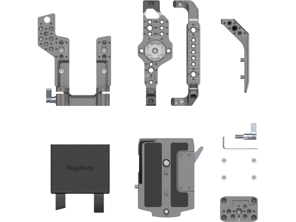 SmallRig 4947 Basic Cage Kit pro Canon C400Modulární konstrukce sady (horní deska, boční desky a základní deska) umožňuje bezproblémové přizpůsobení různým scénářům fotografování.Sada klece je vybavena mnoha vestavěnými montážními rozhraními, jako jsou otvory se závitem 1/4"-20, lokalizační otvory ARRI, lokalizační otvory 1/4"-20, otvory se závitem 3/8"-16, dvojité tyčové svorky, rozhraní QD, lišty NATO, držáky cold shoe, rozety ARRI a další.V kombinaci se stativem usnadňuje rychlé přepínání orientace na šířku a na výšku.K sadě lze také připojit ramenní popruh QD, což umožňuje pohodlné přenášení.Připevnění 15mm duální tyče (prodává se samostatně) usnadňuje použití bezdrátového následného zaostřování, zatímco sýrová zadní deska umožňuje montáž baterií s V držákem.Prodlužovací modul pro originální rukojeť nejenže zlepšuje oporu dlaně, ale také poskytuje další možnosti montáže na horní rukojeť pro rozšíření o příslušenství, jako jsou magická ramena, 15mm tyčové svorky, monitory, audio přijímače a další.Zadní deska pro sýr nabízí více možností montáže, například polohovací otvory 1/4"-20, závitové otvory 1/4"-20, polohovací otvory ARRI, kompatibilní s magickými rameny a deskami V-mount pro upevnění monitorů, baterií V mount a dalšími.Součástí sady je sluneční clona LCD, která blokuje přebytečné světlo a zajišťuje jasné zobrazení obrazovky za jasných podmínek.Navíc je vybavena knoflíkem s palcem, který může nahradit původní zajišťovací šroub na rukojeti umožňující montáž rukojeti bez použití nářadí.Kompatibilita:Canon C400Balení obsahuje:1x horní deska1x levá boční deska1x pravá boční deska1x základní deska1x prodlužovací modul pro originální rukojeť1x zadní deska pro sýr1x sluneční clona LCD1x zajišťovací knoflík rukojetiDoplňkové parametry