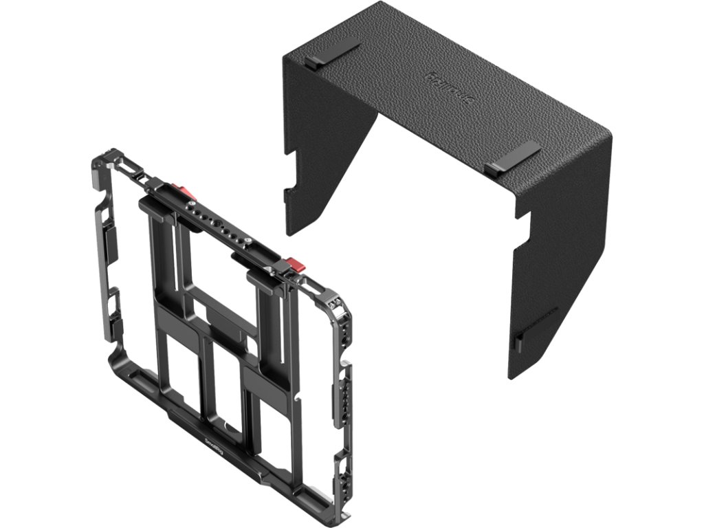 SmallRig 5059 Univerzální klec na tablet pro iPadKlec obsahuje odnímatelnou sluneční clonu na suchý zip, která snižuje oslnění, nastavitelný stojan pro stabilní použití na stole a magnetický slot pro snadný přístup k tužce Apple Pencil.Má posuvnou konstrukci s gumovými podložkami, které chrání iPad, a obsahuje otvory 1/4"-20 a 3/8"-16, slot pro řemínek, držák Cold Shoe a lištu NATO pro montáž příslušenství, jako jsou NPF-adaptéry, externí baterie a držáky SSD.Je ideální pro vylepšení iPadu ve fotografických a kreativních sestavách.Kompatibilita:iPad, iPad Mini, iPad Air a iPad Pro (kromě 12,9" 1. / 2. generace) s úhlopříčkou obrazovky od 8,3" do 13,0".Tablety s šířkou od 134 mm do 216 mm a délkou ≤282 mm.Balení obsahuje:1x klec1x sluneční clonaDoplňkové parametry