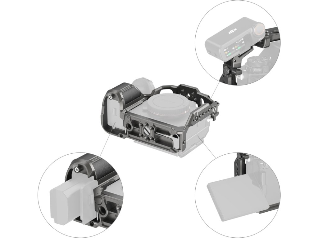 Klec SmallRig 5187 pro Sony Alpha 1 II / Alpha 9 IIITříbodové zajištění proti vychýlení pevně zajišťuje fotoaparát pomocí dvou šroubů 1/4"-20 na spodní a pravé straně spolu s polohovacím kolíkem M4 na spodní straně, čímž odpadá nutnost demontáže D-kroužků.Vestavěné podložky poskytují všestrannou ochranu a zabraňují poškrábání.Výklopná dvířka v prostoru pro baterie navíc zlepšují úchop tím, že nabízejí dodatečnou oporu pro malíček.Tato klec integruje řadu montážních rozhraní, včetně závitových a polohovacích otvorů 1/4"-20, polohovacích otvorů ARRI 3/8"-16 a lišty HawkLock NATO pro upevnění horních nebo bočních rukojetí, což usnadňuje plynulý a stabilní pohyb kamery.Je také vybavena držákem cold shoe pro upevnění zařízení, jako je DJI MIC II a LED videosvětla, a spodním otvorem se závitem 1/4"-20 pro montáž na stolní stativy nebo rychloupínací destičky DJI RS Mini pro použití se stabilizátory.Rychloupínací destička Arca-Swiss umožňuje rychlé přepínání mezi natáčením z ruky, ze stativu typu Arca nebo s gimbalem (DJI RS 2 / RSC 2 / RS 3 / RS 3 Pro / RS 4 / RS 4 Pro).Kromě toho je klec vybavena zásuvkou QD pro připevnění ramenních popruhů spolu s otvory pro popruhy na obou stranách a ve spodní části pro připevnění zápěstních popruhů, ramenních popruhů a dalšího příslušenství.Dodává se také s magnetickým klíčem ve spodní části pro snadnou demontáž a montáž.Kompatibilita:Sony Alpha 1 II / Alpha 9 IIIBalení obsahuje:KlecNávod k obsluzeDoplňkové parametry