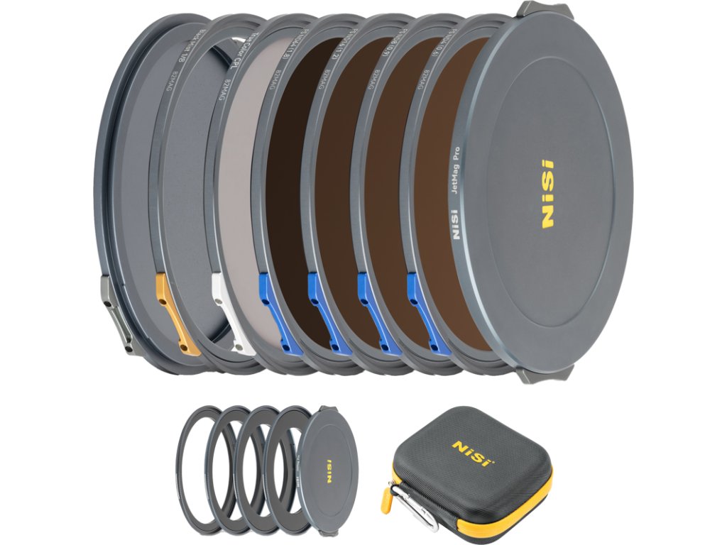 Sada pro kino JetMag Pro Kompletní sada pro kina obsahuje: FS ND4 (2 stupně), FS ND8 (3 stupně), FS ND16 (4 stupně), FS ND64 (6 stupňů), True Color CPL a Black Mist 1/8 filtry. Filtry FSND True-to-Life Color Poskytují přesnou kontrolu nad světlem a zároveň zachovávají přirozené barvy bez barevného nádechu. Filtr Black Mist 1/8 Změkčuje světla a snižuje kontrast pro filmový, snový efekt. Filtr True Color CPL Zlepšuje barvy a eliminuje odlesky, aniž by ovlivnil přesnost barev. O filtrech NiSi JETMAG Filtry JETMAG jsou konstruovány pro vysoký výkon s velmi tenkými rámečky, které eliminují vinětaci, a to i u ultraširokých objektivů. Patentovaný uzamykací design zajišťuje, že naskládané filtry zůstanou pevně na svém místě, takže tyto filtry jsou ideální pro snímání krajin, městských scenérií a portrétů. Klíčové vlastnosti filtrů NiSi JETMAG: Rychlé magnetické upevnění: Snadné nasazování a sundávání filtrů díky magnetickému provedení, které šetří čas při rychlém fotografování. Stabilní uzamykací mechanismus: Patentovaný uzamykací design udržuje filtry v bezpečí i při skládání více filtrů na sebe v dynamickém prostředí. Ultra tenké rámečky: Zamezují vinětaci u širokoúhlých objektivů a umožňují pořizovat ostré a čisté snímky bez zkreslení okrajů. Barevně odlišené úchyty: Každý typ filtru má barevně odlišený úchyt pro snadnou identifikaci a rychlý přístup ke správnému filtru.Posilte svůj tvůrčí proces s filtry NiSi JETMAG jsou navrženy pro rychlost, přesnost a odolnost. Co je v balení: 1x filtr NiSi JetMag Pro Cirkulární polarizační filtr True Color CPL 1x filtr NiSi JetMag Pro Black Mist 1/8 1x filtr NiSi JetMag Pro FSND4 (0,6) 2stop. 1x filtr NiSi JetMag Pro FSND8 (0,9) 3stopový 1x NiSi JetMag Pro Filter FSND16 (1,2) 4stop 1x filtr NiSi JetMag Pro FSND64 (1,8) 6stop 2x kovová přední krytka NiSi JetMag Pro 1x kovová zadní krytka NiSi JetMag Pro 1x NiSi JetMag Pro adaptační kroužek 67 mm 1x NiSi JetMag Pro Adapter Ring 72 mm 1x NiSi JetMag Pro Adapter Ring 77mm 1x NiSi JetMag Pro Adapter Ring 82mm 1x NiSi JetMag Pro Caddy PouchDoplňkové parametry