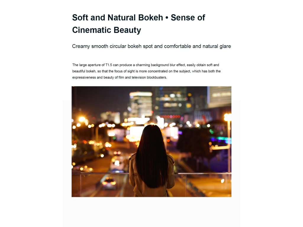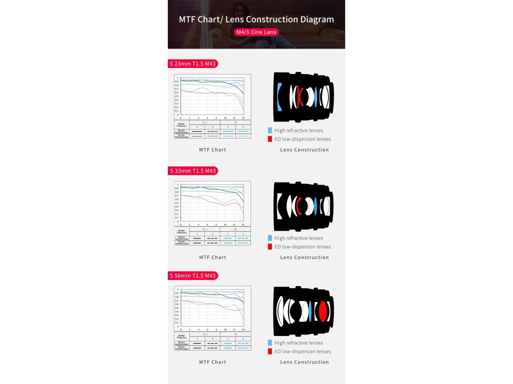 Vyznačují se konstrukcí zařízení follow focus, velkou clonou T1,5, díky níž se dobře hodí pro situace se slabým osvětlením a poskytují malou hloubku ostrosti pro filmovější vzhled. Skvělá ostrost, nízké zkreslení i neviditelný efekt dýchání budou velkým přínosem pro profesionální a kvalitní videozáznam!