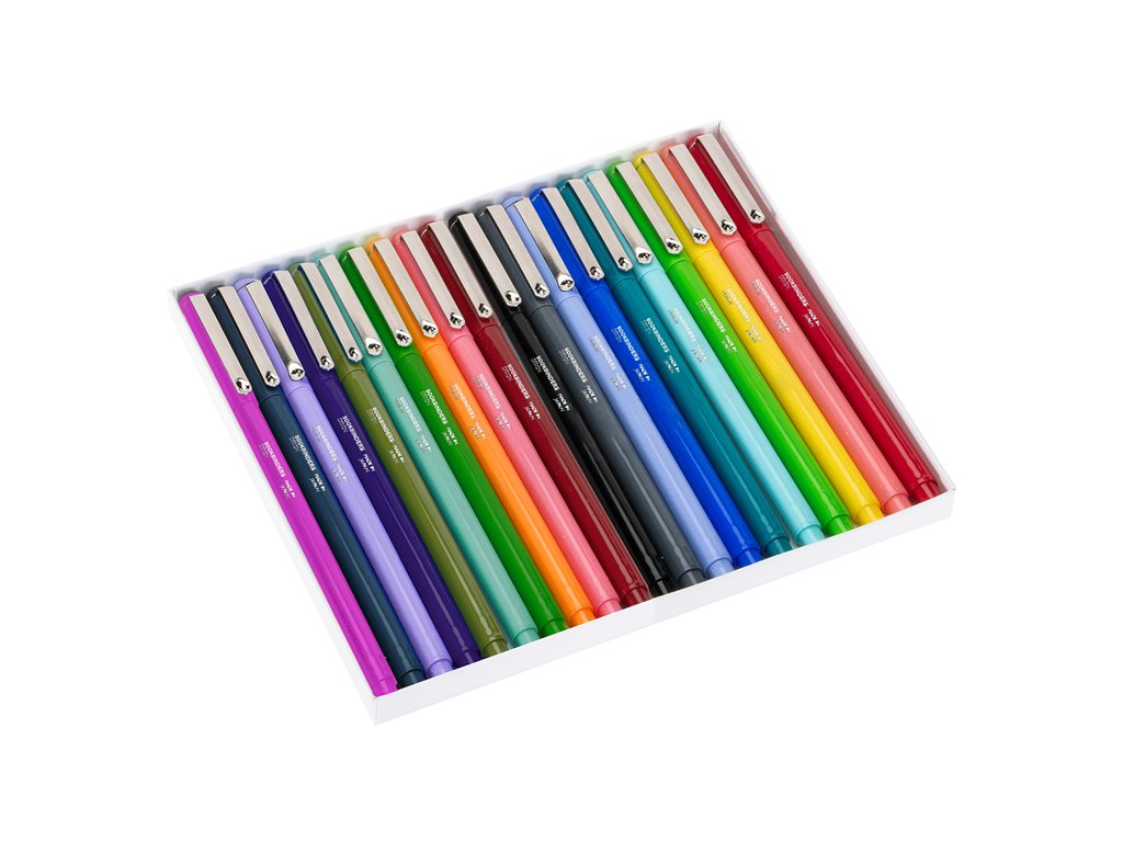 Svazky knih Fineliner v balení po 20 kusechBookBinders Classic Fineliner v krásné sadě 20 per v různých barvách. Tenký hrot pera je ideální pro psaní, detaily a jemné linky. Inkoust je netoxický a neobsahuje kyseliny.Pera jsou dodávána v krásné kartonové krabičce se zlatým reliéfním víčkem. Ideální jako dárek!Místo výroby: Místo výroby: JaponskoVelikost špendlíku: . Velikost špendlíku: 1,5 mm. Velikost špendlíku: 1,5 mm.Vnější rozměry velikosti: 142 x 9 mmInformace o udržitelnosti: Bezkyselinový a netoxický inkoustDoplňkové parametry