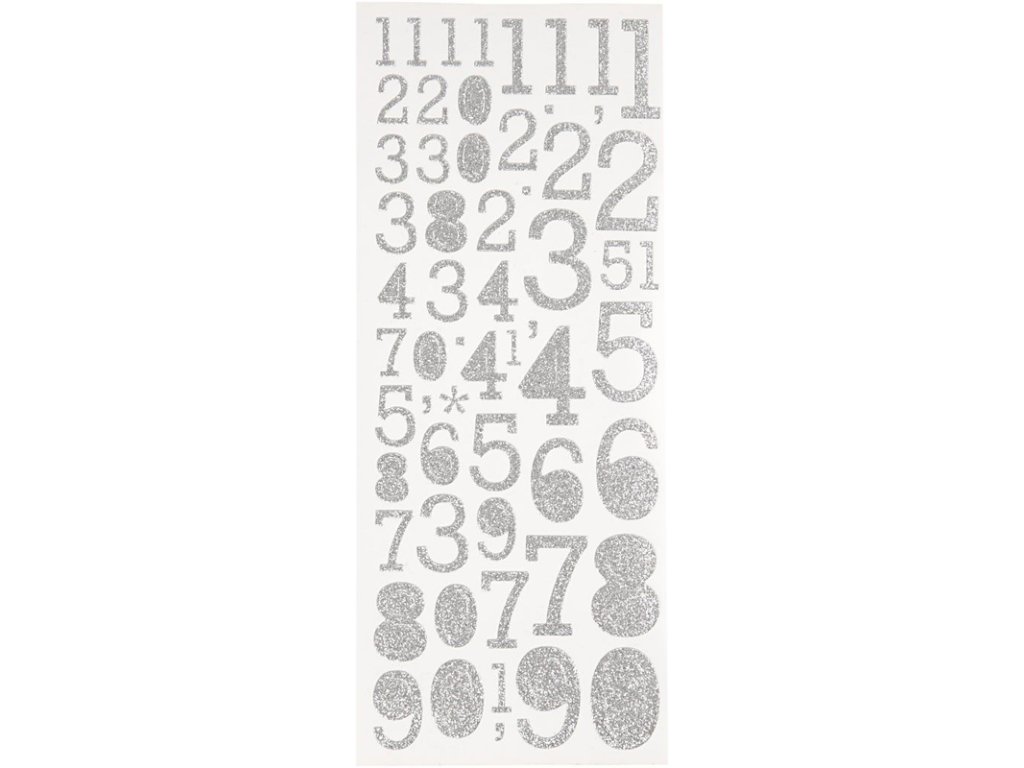 Třpytivé samolepky v číslech 0-9, stříbrná barvaDoplňkové parametry