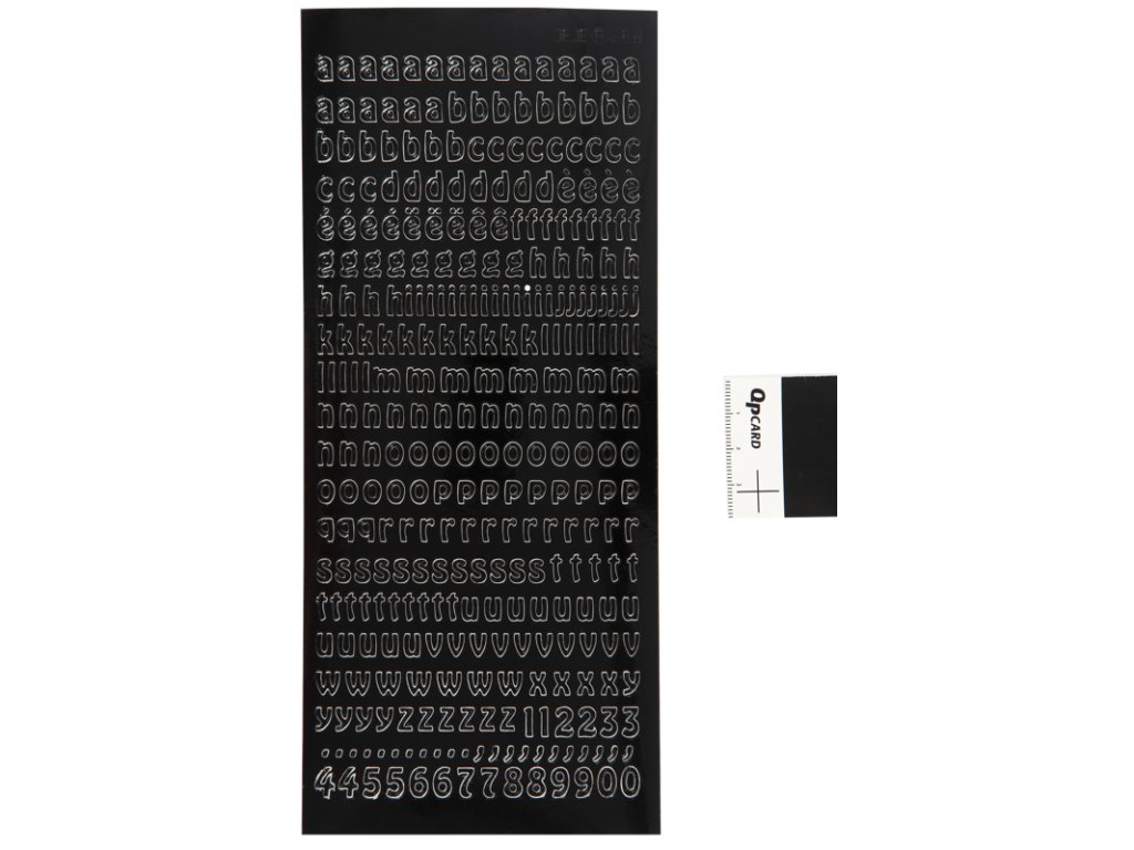 Samolepicí samolepky v černé fólii. Běžnější písmena v menší velikosti.Doplňkové parametry