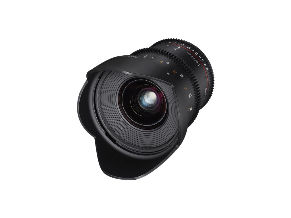 Samyang 20mm T1.9 ED AS UMC je širokoúhlý manuální video objektiv určený pro digitální zrcadlovky s full frame snímačem. Vysoká světelnost T1.9 zajišťuje vysokou rychlost závěrky i za omezených světelných podmínek a nabízí tak fotografie nejvyšší kvality. Rozjasní vaše každodenní snímky. Také vytváří vynikající efekt rozostření díky účinně zvýrazněnému hlavnímu objektu.Mezi ultra širokoúhlým 16mm a standardním 24mm objektivem se tento 20mm objektiv skvěle hodí pro širokoúhlé snímky nejen v interiérech, jako jsou koncerty nebo oslavy, ale i pro fotografování venku. Minimální zaostřovací vzdálenost 0,2 m dodává tomuto objektivu všestrannost. Povrchová úprava Ultra Multi Coating (UMC) spolu se dvěma asférickými členy a třemi ED členy s extra nízkým rozptylem světla byla zahrnuta do optické konstrukce 13 členů ve 12 skupinách , aby se minimalizovala chromatická aberace a zbytečný rozptyl světla, což přináší vysoké rozlišení od středu obrazu až k rohům. Samyang 20mm T1.9 ED AS UMC je objektiv určený pro kinematografii a speciálně navržený pro profesionální follow focus systém díky tichým a plynulým (de-click) kroužkům (clonový a ostřící). Stupnice vzdálenosti a stupnice clonových čísel T jsou umístěny na obou stranách objektivu pro usnadnění natáčení.Samyang 20mm T1.9 je kompatibilní s 9 různými bajonety fotoaparátů: Canon EF, Nikon F, Pentax K, Sony A, Canon M, Fujifilm X, Samsung NX, Sony E a MFT. Hlavní vlastnosti: Vysoká světelnost T1.9 Ultra široký úhel 94.8° Asférické členy a ED členy Povrchová úprava Ultra Multi Coating (UMC) 7mi lamelová kruhová clona Plynulý ostřící a clonový kroužek VDSLR objektiv Parametry: Ohnisková vzdálenost: 20 mm Světelnost: 1.9 Konstrukce objektivu: 13 členů v 12 skupinách Minimální zaostřovací vzdálenost: 20 cm Délka: 85,9 mm 114,7 mm Hmotnost : 508 586 g Počet lamel clony: 7 Průměr filtru: 77mm Maximální clonové číslo (T): 22 Kompatibilní bajonety: Canon EF, Nikon F, Sony, Pentax, Olympus 4/3, MFT, Canon M, Fuji X, Sony E Ohnisko: pevnéDoplňkové parametry