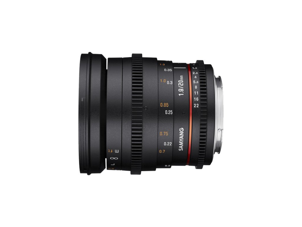 Samyang 20mm T1.9 ED AS UMC je širokoúhlý manuální video objektiv určený pro digitální zrcadlovky s full frame snímačem. Vysoká světelnost T1.9 zajišťuje vysokou rychlost závěrky i za omezených světelných podmínek a nabízí tak fotografie nejvyšší kvality. Rozjasní vaše každodenní snímky. Také vytváří vynikající efekt rozostření díky účinně zvýrazněnému hlavnímu objektu.Mezi ultra širokoúhlým 16mm a standardním 24mm objektivem se tento 20mm objektiv skvěle hodí pro širokoúhlé snímky nejen v interiérech, jako jsou koncerty nebo oslavy, ale i pro fotografování venku. Minimální zaostřovací vzdálenost 0,2 m dodává tomuto objektivu všestrannost. Povrchová úprava Ultra Multi Coating (UMC) spolu se dvěma asférickými členy a třemi ED členy s extra nízkým rozptylem světla byla zahrnuta do optické konstrukce 13 členů ve 12 skupinách , aby se minimalizovala chromatická aberace a zbytečný rozptyl světla, což přináší vysoké rozlišení od středu obrazu až k rohům. Samyang 20mm T1.9 ED AS UMC je objektiv určený pro kinematografii a speciálně navržený pro profesionální follow focus systém díky tichým a plynulým (de-click) kroužkům (clonový a ostřící). Stupnice vzdálenosti a stupnice clonových čísel T jsou umístěny na obou stranách objektivu pro usnadnění natáčení.Samyang 20mm T1.9 je kompatibilní s 9 různými bajonety fotoaparátů: Canon EF, Nikon F, Pentax K, Sony A, Canon M, Fujifilm X, Samsung NX, Sony E a MFT. Hlavní vlastnosti: Vysoká světelnost T1.9 Ultra široký úhel 94.8° Asférické členy a ED členy Povrchová úprava Ultra Multi Coating (UMC) 7mi lamelová kruhová clona Plynulý ostřící a clonový kroužek VDSLR objektiv Parametry: Ohnisková vzdálenost: 20 mm Světelnost: 1.9 Konstrukce objektivu: 13 členů v 12 skupinách Minimální zaostřovací vzdálenost: 20 cm Délka: 85,9 mm 114,7 mm Hmotnost : 508 586 g Počet lamel clony: 7 Průměr filtru: 77mm Maximální clonové číslo (T): 22 Kompatibilní bajonety: Canon EF, Nikon F, Sony, Pentax, Olympus 4/3, MFT, Canon M, Fuji X, Sony E Ohnisko: pevnéDoplňkové parametry