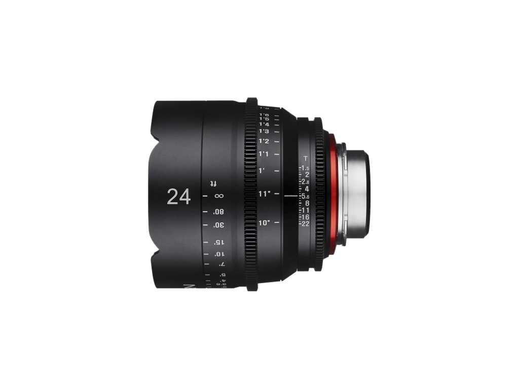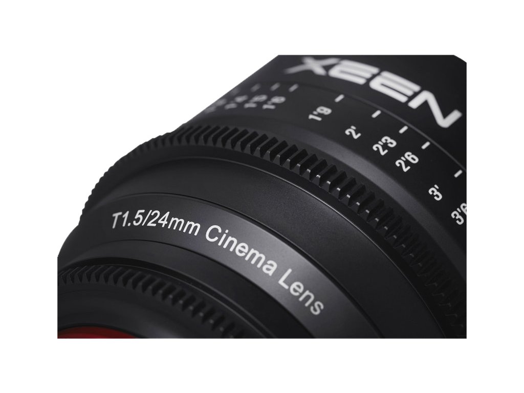 Xeen 24mm T1.5 FF Cine je standardní manuální objektiv navržený speciálně pro bezzrcadlovky se snímačem full-frame. Rozšiřte své filmařské zkušenosti s tímto video objektivem s vysokou světelností T1.5 a vynikajícími optickými vlastnostmi. Díky tomu získáte světlé a reálné snímky s působivým bokeh.Série XEEN přináší bezkonkurenční výkon za přijatelnou cenu k uspokojení potřeb kameramanů a filmařů bez ohledu na situaci nebo zařízení. Hlavní vlastnosti: Vysoká rychlost při zhoršených světelných podmínkách se světelností T1.5 11 lamel clony pro kruhový bokeh Ergonomicky navržený prstenec ostření a clony pro rychlou a pohodlnou korekci při natáčení Kalibrovaná stupnice zaostření v metrických nebo britských jednotkách Vynikající optický výkon s technologií vícevrstvé povrchové úpravy Pokrývá full-frame senzory Pevný a spolehlivý kovový kryt Technické parametry: Ohnisková vzdálenost: 24 mm Světelnost: 1.5 Minimální zaostřovací vzdálenost: 25 cm Délka: 117,6 mm Hmotnost: 1180 g Počet lamel clony: 11 Maximální clona (T): 22 Typ bajonetu: Canon, Nikon, Sony E, MFT, PL Ohnisko: pevnéDoplňkové parametry