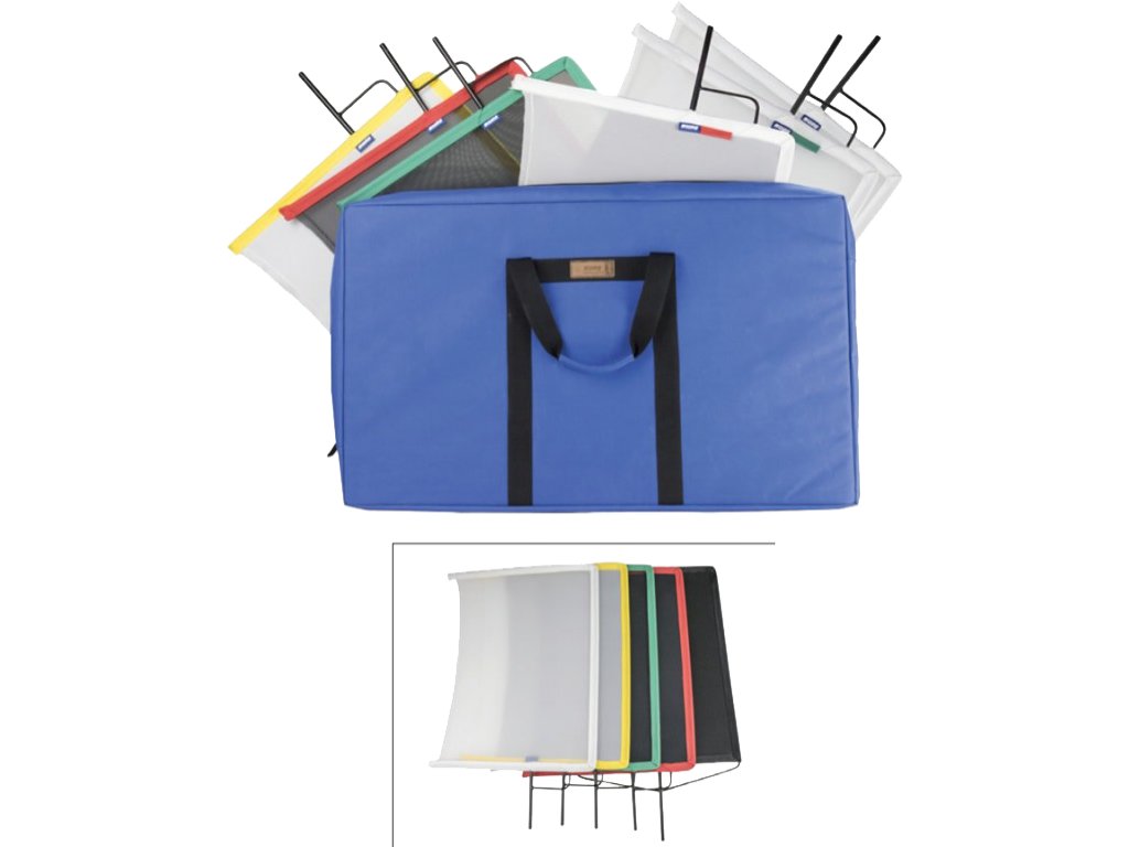 Ke zvládnutí potřeb kompletního ovládání světel pomocí pláten je součástí 6 různých pláten včetně: jednoduché černé síťky, dvojité černé síťky, jednoduché bílé síťky, dvojité bílé síťky, umělého hedvábí a 1/4 hedvábí plus brašny na přenášení.Tato sada 24" x 36" Open End Flag Kit obsahuje: jednoduchou černou síťku, dvojitou černou síťku, jednoduchou bílou síťku, dvojitou bílou síťku, umělé hedvábí a 1/4 hedvábí plus brašnu na přenášeníPoradí si s většinou potřeb regulace osvětlení pomocí plátnaTyčka o průměru 9,5 mm navařená na rámSoučástí taška pro přenášeníPevný ocelový rám přišitý tkaninouDoplňkové parametry