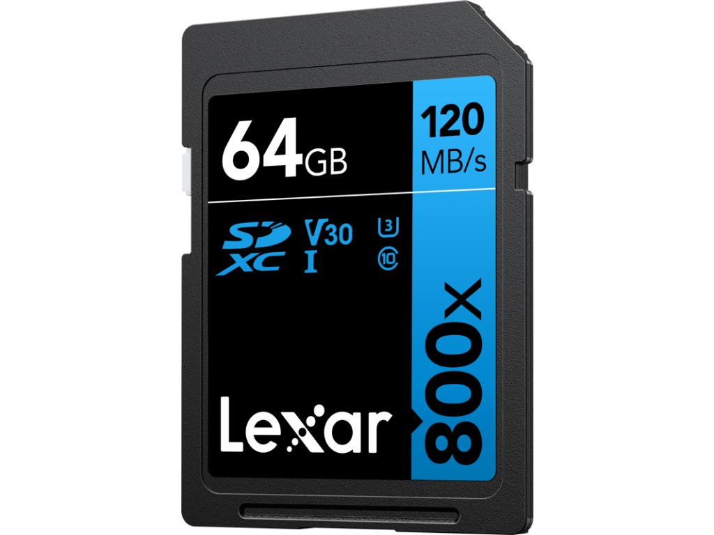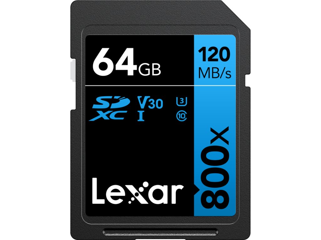 Lexar Professional 800x SDXC UHS-I cards, C10 V30 U3, R120 64GB