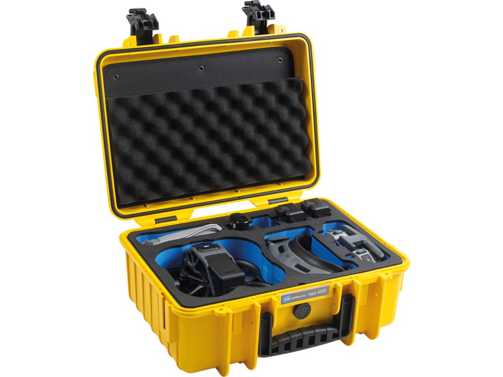 **Kufry a brašny od společnosti B&W jsou více než jen pouhým řešením pro přepravu – inspirují a pohánějí k aktivitě. ****K tomuto účelu fungují s velkou motivací a maximální vášní. **OCHRANA DRONU: Je vhodné si dobře promyslet nejen zakoupení dronu, ale také kufru na něj. S prachotěsnými, vodotěsnými a otřesuvzdornými kufry značky B&W dopravíte svůj dron bezpečně na místo určení.**VŠE MUSÍ DOKONALE SEDNOUT: **Dron není levná záležitost a proto by měl být spolu se svým vybavením co nejlépe chráněn i při přepravě. Outdoorový kufr 4000 s pěnovou vložkou pro modely DJI Avata, DJI Avata Smart Combo a DJI Avata Pro-View Combo nabízí prostor pro dron a jeho doplňkové vybavení, jako je například sada Fly More. Díky přizpůsobené pěnové vložce je možné v kufru v závislosti na konfiguraci bezpečně přepravovat až 6 baterií pro dron (z toho jednu v helikoptéře) spolu se 3 bateriemi pro brýle (v brýlích).NA CESTÁCH: Cestujete na dovolenou letadlem a chcete se svým dronem DJI pořídit dechberoucí záběry krajiny na dovolené ze vzduchu? Jak ale dron s doplňkovým vybavením do požadované destinace přepravíte? Díky přesně přizpůsobené pěnové vložce v kufru značky B&W bude váš dron optimálně chráněn proti turbulencím.AŤ JSTE KDEKOLI: Tento kufr ochrání váš dron Autel před sněhem, kroupami, deštěm a žádným problémem nejsou dokonce ani teploty od −30 °C do +80 °C. Neexistují téměř žádné venkovní podmínky, které by kufr nemohl zvládnout.ODOLNOST PROTI NÁRAZŮM A OTŘESŮM: Vždy se může stát, že něco spadne. Tento kufr je odolný proti nárazům a otřesům. Váš dron zvládne bezpečně jakýkoli pád. Extrémně robustní a s maximální životností!BEZPEČÍ: Pogumovaná rukojeť umožňuje bezpečné uchopení při přenášení a 2 očka pro visací zámky nabízejí možnost chránit kufr před neoprávněným přístupem.**OBSAH: **Kufr obsahuje v základně modrou a černou přizpůsobenou pěnovou vložku a ve víku kapsu na dokumenty.Vlastnosti•Extrémně robustní kufr: vyrobený z polypropylenu (PP)•Certifikován dle standardů MIL-STD-810, STANAG 4280, DEF STAN 81–41 a ATA 300•Vhodný pro leteckou přepravu: automatický tlakový kompenzační ventil•Pevný, prachotěsný, voděodolný (krytí IP67)•Teplotně stabilní od −30 °C do +80 °C•Štítek s jmenovkou•Stohovatelný•Dvě očka pro visací zámky (Ø 7,0 mm)•Pogumovaná rukojeť•Speciálně vyvinuté zaklapávací zámky: pohodlné otevírání a zavírání kufruRozměry•Vnitřní rozměry: 385 × 265 × 165 mm•Vnější rozměry: 420 × 325 × 180 mm•Rozměry balení: 437 × 356 × 195 mm•Čistá hmotnost: 3,12 kg•Hrubá hmotnost: 2,68 kg•Objem: 16,6 lVolitelné příslušenství (není součástí dodávky)•Pěnová kostka (obj. č. dílu SI/4000)•Dělicí systém (obj. č. dílu RPD/4000)•Ramenní popruh (obj. č. dílu CS/3000)•Kapsa na víko (obj. č. dílu LP/4000) (součást balení)•Instalační rám (obj. č. dílu PF/4000)•Síťovaná kapsa (obj. č. dílu MB/4000)•Batohový systém (obj. č. dílu BPS.S1)Doplňkové parametry