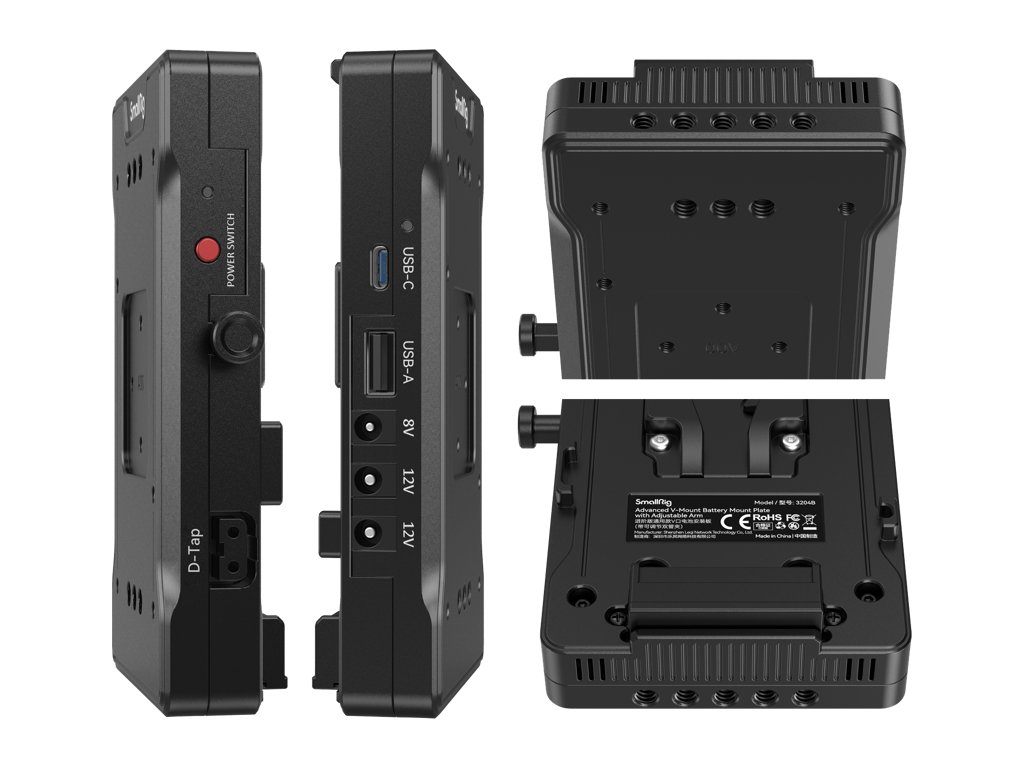 SmallRig 3204 Battery Adapter Plate V-Mount w Adjustable Arm (adaptérová deska pro baterie V-Mount s nastavitelným ramenem)Poskytuje výstupní port 8 V DC, dva výstupní porty 12 V DC, výstupní port 14,8 V D-Tap a výstupní port 5 V/2 A USB pro napájení fotoaparátu a dalšího externího příslušenství, jako je monitor, telefon atd. prostřednictvím baterie s V držákem.Je vybaven vypínačem, který ovládá všechny výstupní porty pro rychlejší a pohodlnější zapnutí nebo vypnutí vaší sestavy.Dodává se s dvojitou 15mm tyčovou svorkou, která pomáhá připevnit desku k 15mm tyčovému systému LWS, a s nastavitelným ramenem pro rychlé nastavení polohy baterie pro montáž do V.Kompatibilita:Deska je vhodná pro většinu baterií s V montáží, ale NE pro baterie s V montáží řady PAGlink a Patona Premium Battery pro BP-190WS.Balení obsahuje:1 x adaptérová deska pro baterie pro montáž do V1 x dvojitá 15mm tyčová svorka s nastavitelným ramenem2 x imbusový klíč2 x montážní šroubDoplňkové parametry