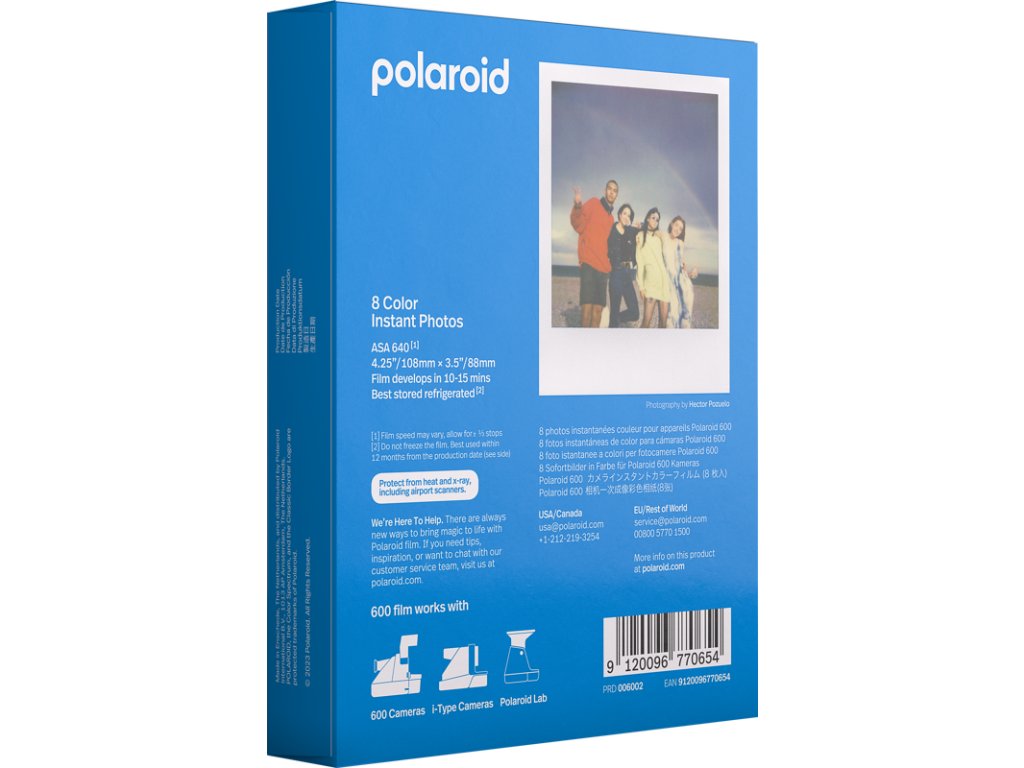 Osm instantních barevných fotografií s bílými rámečky. Pro použití v fotoaparátech typu Polaroid 600 a fotoaparátech i-Type. Fotografie se začne objevovat během 2 minut. Celý vývoj trvá asi 10-15 minut. Naše nejnovější technologie výroby barevného filmu vytváří fotografie s bohatými barvami, vyváženými tóny a jemnými texturami, které dělají analogovou fotografii tak výraznou. Jeho ikonický bílý rámeček je legendární.Doplňkové parametry