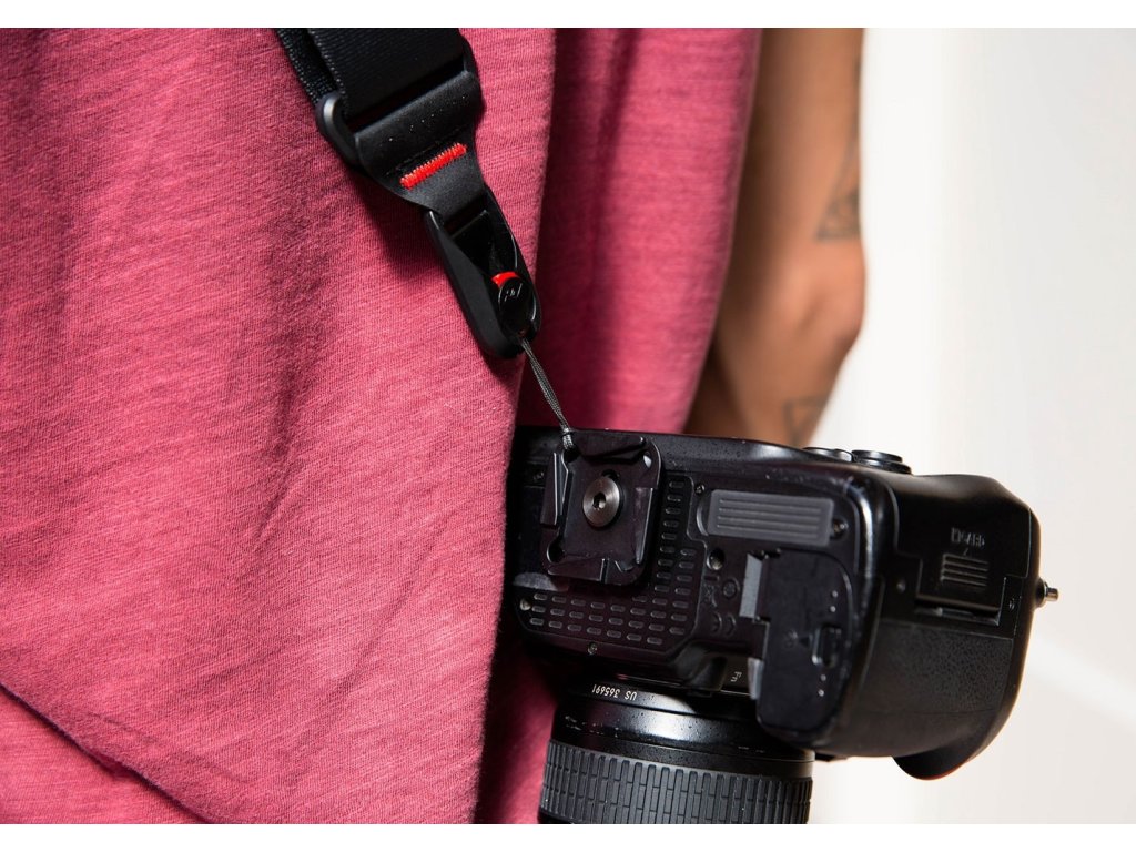 - Elegantní a nenápadné připojení Připojení k okům na těle fotoaparátu nebo na jeho spodní část pomocí adaptéru Anchor Mount s velmi nízkým profilem.