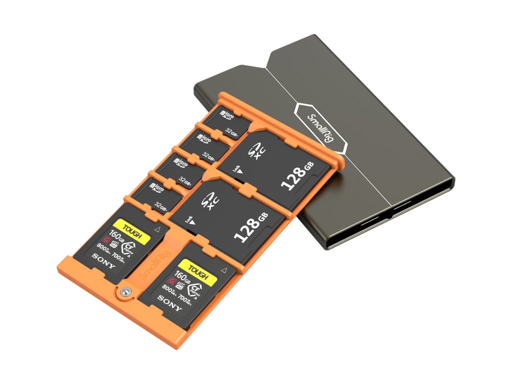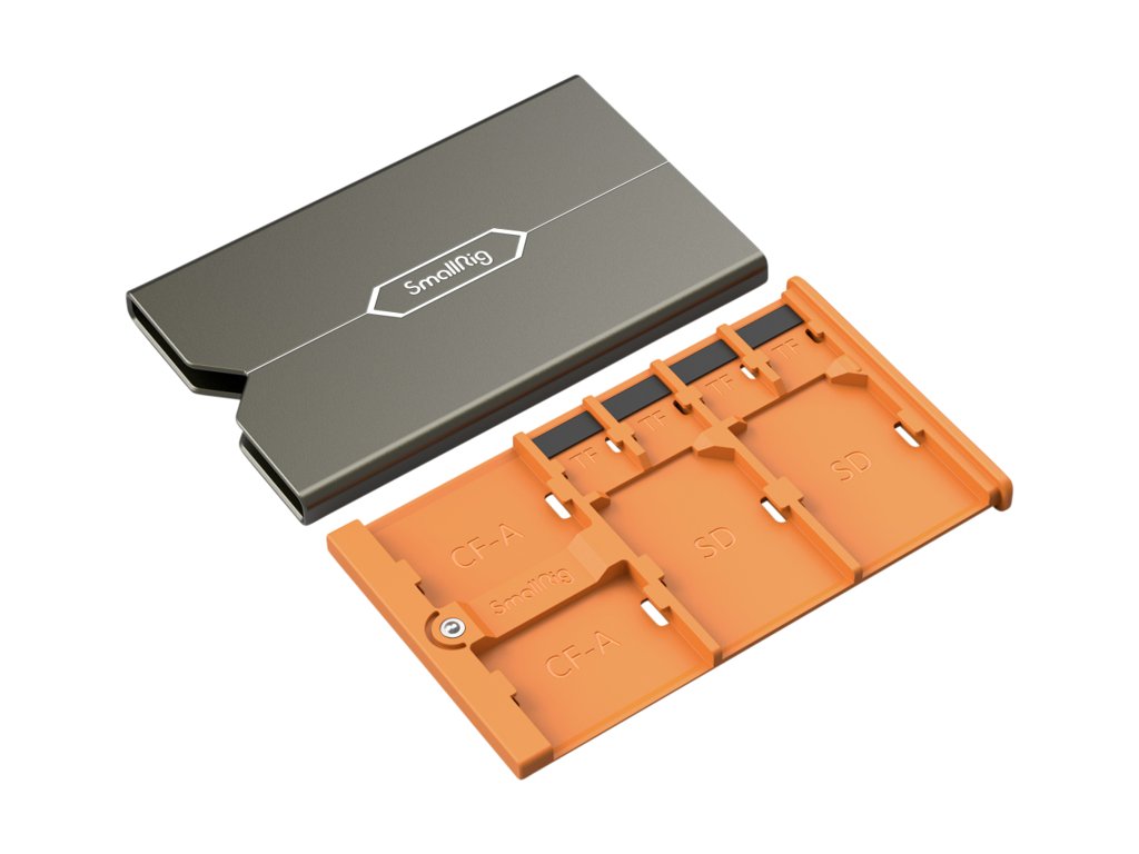 SmallRig 4107 je precizně navržené pouzdro pro uživatele pracující s kartami CFexpress Type-A, které doplňuje prostor pro dvě SD a čtyři microSD karty. Každý slot je označený a tvarovaný pro konkrétní typ média, což usnadňuje orientaci a snižuje riziko ztráty nebo záměny během práce v terénu.