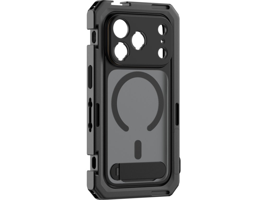 Pouzdro SmallRig 5543 Mobile Video Cage pro iPhone 17 Pro Max Flagship EditionKromě každodenní ochrany telefonu je pouzdro standardně vybaveno zadní deskou s T-mount a zadní deskou se 17mm závitem pro montáž externího objektivu. Zadní desku T-mount lze vyměnit za adaptér s 67mm magnetickým filtrem (prodává se samostatně) pro zvýšení optického výkonu.Telefon lze do klece upevnit i s nasazeným pouzdrem. Klec je vybavena několika otvory s 1/4"-20 závitem proti zkroucení a úchyty pro studenou botku pro rozšíření o příslušenství, jako jsou rukojeti, stativy, mikrofony a světla. Klasická rychloupínací rozhraní umožňují efektivní nastavení z ruky nebo ze stativu.Otvory pro boční popruhy jsou kompatibilní s profesionálními zápěstními a ramenními popruhy s průměrem pod 2 mm, takže máte volné ruce mezi záběry. Vydlabaná konstrukce zachovává přístup ke všem tlačítkům iPhonu, portům, radarovému systému, ultraširokoúhlému objektivu a bezdrátovému nabíjení.Meziplynulý mechanismus rychlého zámku umožňuje pohodlné a bezpečné nasazení / sejmutí telefonu a zabraňuje náhodnému odemknutí a vysunutí telefonu. Celokovová konstrukce poskytuje komplexní ochranu, tlumení nárazů a odolnost proti poškrábání. Při fotografování pod vodou nebo při scénářích s vysoce výkonným chlazením lze telefon používat bez pouzdra jeho přímou montáží do klece spolu s měkkým nárazníkem TPU.Kompatibilita:iPhone 17 Pro MaxBalení obsahuje:Klec pro iPhone 17 Pro MaxPouzdro pro iPhone 17 Pro MaxTPU měkký nárazník pro iPhone 17 Pro MaxZadní deska pro upevnění objektivu T-Mount17mm zadní deska objektivuNávod k obsluzeDoplňkové parametry