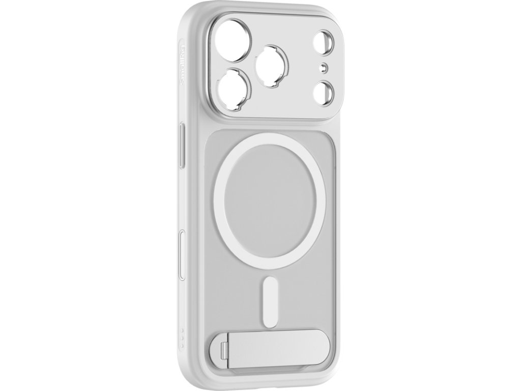 Fotografické pouzdro SmallRig 5550 FilMov pro iPhone 17 Pro (bílé)Je vybaveno systémem rychlého uvolnění zadní desky objektivu, který zahrnuje zadní desky se závitem T-Mount a 17 mm pro rychlou výměnu objektivu. Dodatečně podporuje volitelné adaptéry FilMov 67mm připojitelný filtr (prodávají se samostatně) pro použití 67mm magnetických filtrů.Pouzdro je navrženo pro optimální funkčnost a je přesně sladěno s ovládacím tlačítkem fotoaparátu iPhonu, takže poskytuje citlivou hmatovou odezvu a zároveň zajišťuje komplexní ochranu. Integrovaný víceúhelníkový stojánek (30°-110°) umožňuje snadný přechod mezi orientací na výšku a na šířku. Vestavěné magnety MagSafe zajišťují univerzální kompatibilitu s příslušenstvím MagSafe, zatímco boční otvor pro šňůrku usnadňuje připevnění zápěstního nebo ramenního popruhu pro pohodlné přenášení na cestách.Kompatibilita:iPhone 17 ProBalení obsahuje:Pouzdro na telefonZadní deska objektivu T-MountZadní deska objektivu se závitem 17 mmNávod k obsluzeDoplňkové parametry