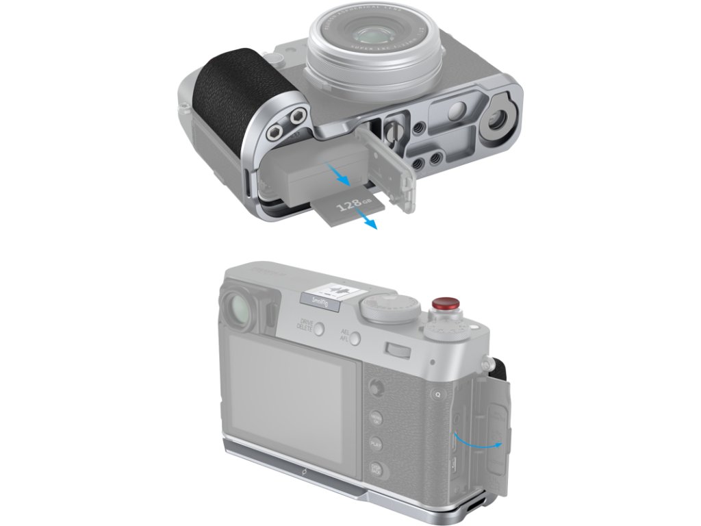 Ergonomické provedení neomezuje přístup ke klíčovým částem fotoaparátu, zachovává snadný přístup k baterii i paměťové kartě, což zaručuje pohodlí při každodenní práci.