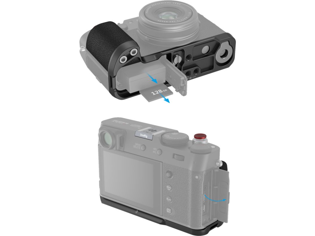 Ergonomické provedení neomezuje přístup ke klíčovým částem fotoaparátu, zachovává snadný přístup k baterii i paměťové kartě, což zaručuje pohodlí při každodenní práci.