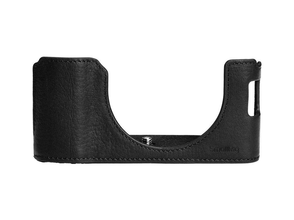 Kovový rám z hliníku dodává konstrukci pevnost a zajišťuje stabilní a bezpečné usazení krytu. Praktický integrovaný závit 1/4″‑20 na spodní straně umožňuje snadné a rychlé připojení na stativ, aniž byste museli half‑case sundat. Pro špičkový komfort je zachovaný přístup ke krytu baterie, paměťové kartě i ovládacím prvkům. Součástí je PU ramenní popruh, který přidává pohodlí při nošení a elegantní styl.