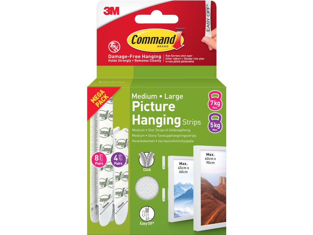 3M Command Strips V-Pack White 4 Sets M + 8 Sets