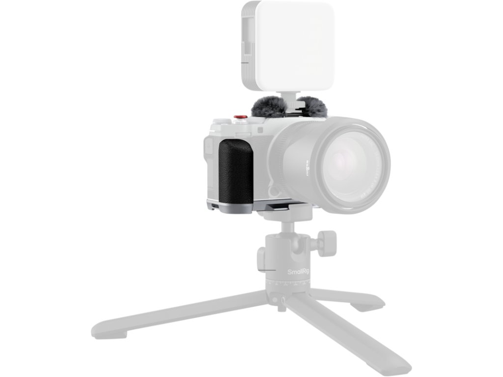 Stříbrná montážní deska SmallRig L-Shape s rukojetí ze silikonu byla navržena speciálně pro FUJIFILM X-M5 a přináší kombinaci funkčnosti, ergonomie a stylového vzhledu. Upevňuje se pomocí 1/4"-20 šroubu na spodní straně, přičemž vnitřní silikonová podložka chrání tělo fotoaparátu před poškrábáním. Rukojeť přesně kopíruje tvar přístroje, díky čemuž skvěle padne do ruky a přispívá k jistějšímu a pohodlnějšímu držení.