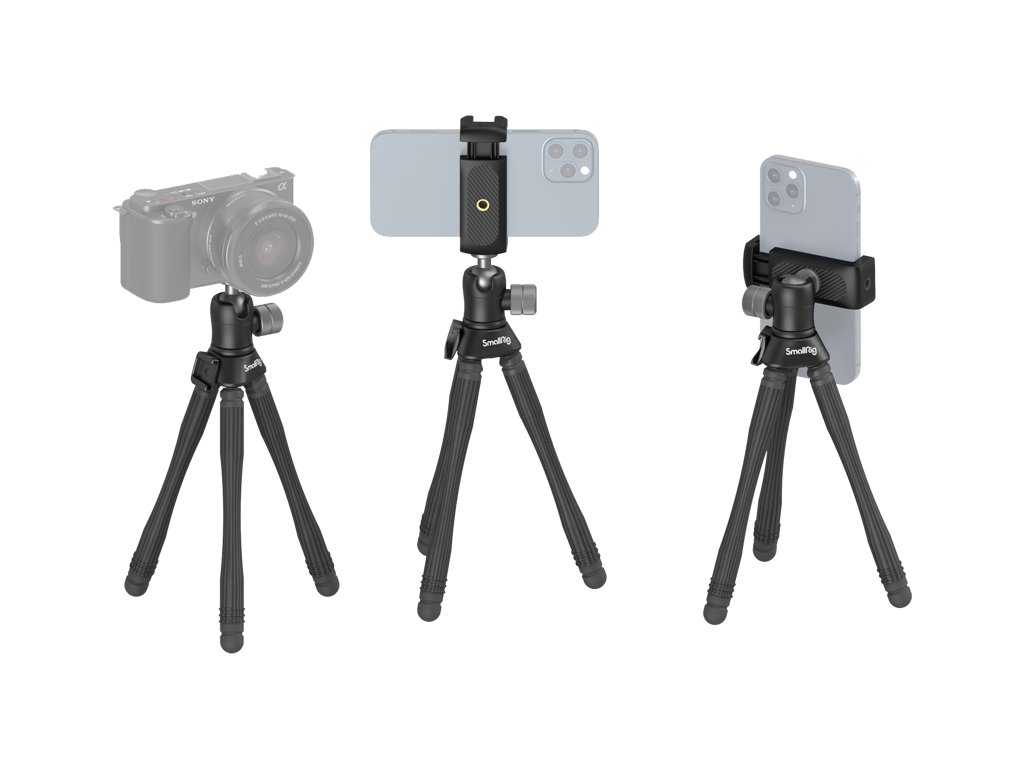 SmallRig 3446 BeautyPod 1.5K Flexible Mini stativ BT-15 Hlavou lze otáčet o 360° a naklánět o 90° pro jak horizontální, tak vertikální fotografování.Její základní destička se dodává s dvoucestnými sáňkami cold shoe s rychloupínáním, které umožňuje nastavení ve směru dopředu a dozadu podle požadavků.Stativ je vyroben z kvalitní odolné hliníkové slitiny a nylonu s vlákny a váží pouhých 220 g, unese až 1,5 kg a snadno se vejde do brašny přes rameno nebo příruční tašky. Můžete jej tak snadno přenášet a používat podle potřeby.Držák na chytrý telefon je kompatibilní s telefony, které mají šířku od 60 do 95 mm, jako je iPhone 12 mini, iPhone 12, iPhone 12 Pro, iPhone 12 Pro Max, Galaxy S20 5G, S20 Ultra 5G, S20+ 5G, Huawei P40, P40 Pro atd.V jeho horní části jsou také sáňky cold shoe pro připevnění mikrofonu, LED světla atd.Po sejmutí držáku na chytrý telefon můžete připevnit akční kamery, kompaktní digitální fotoaparáty a lehké bezzrcadlové fotoaparáty s hmotností až do 1,5 kg. Poznámka! Stativ unese až 1,5 kg v případě, že jsou jeho flexibilní nohy v rovné poloze a stabilní a že stojí na rovném povrchu. Jeho nosnost závisí na aktuálním používání. Technické parametry: Rozměry: 316 x 60 x 44 mm Hmotnost: 220g ±5g Nosnost: 1,5 kg Materiál(y): hliníková slitina + nylon s vlákny Obsah balení: 1× flexibilní mini stativ 1× držák na chytrý telefon Poznámka! Světlo a mikrofon jsou volitelná příslušenství a prodávají se samostatně.Doplňkové parametry
