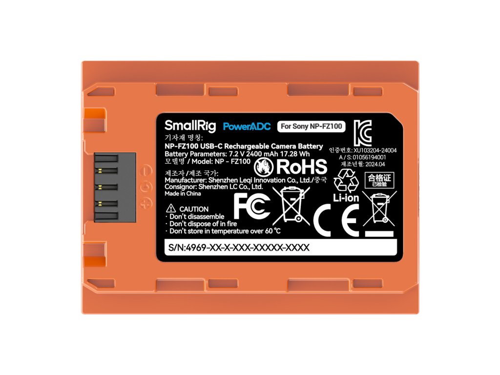 SmallRig 4969 NP-FZ100 USB-C Rechargeable Camera Battery Orange