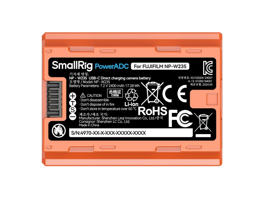 SmallRig 4970 NP-W235 USB-C dobíjecí baterie – oranžová