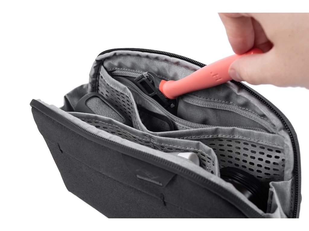Malá toaletní taštička Small Wash Pouch je menší sourozenec Wash Pouch. Zjednodušená, ale přesto plně vybavená toaletní taštička pro ty, kteří si chtějí sbalit jen to nejnutnější. Wash Pouch Small má stejné jedinečné materiály a vlastnosti jako větší verze, ale má méně kapes a je menší, takže se vejde opravdu kamkoliv. Odolné, povětrnostním vlivům odolné a snadno omyvatelné materiály odpuzují vodu a nečistoty, takže toho vydrží opravdu hodně a bude zářit čistotou mnoho let. Pevný zip UltraZip (#8) odolný proti povětrnostním vlivům umožňuje taštičku doširoka otevřít, takže máte dokonalý přehled a přístup k obsahu. UltraZip vydrží desítky let používání díky patentovanému vláknu odolnému proti oděru. Taštička stojí (vzpřímeně) na podložce nebo visí pomocí duralového háčku (lze jej skrýt).