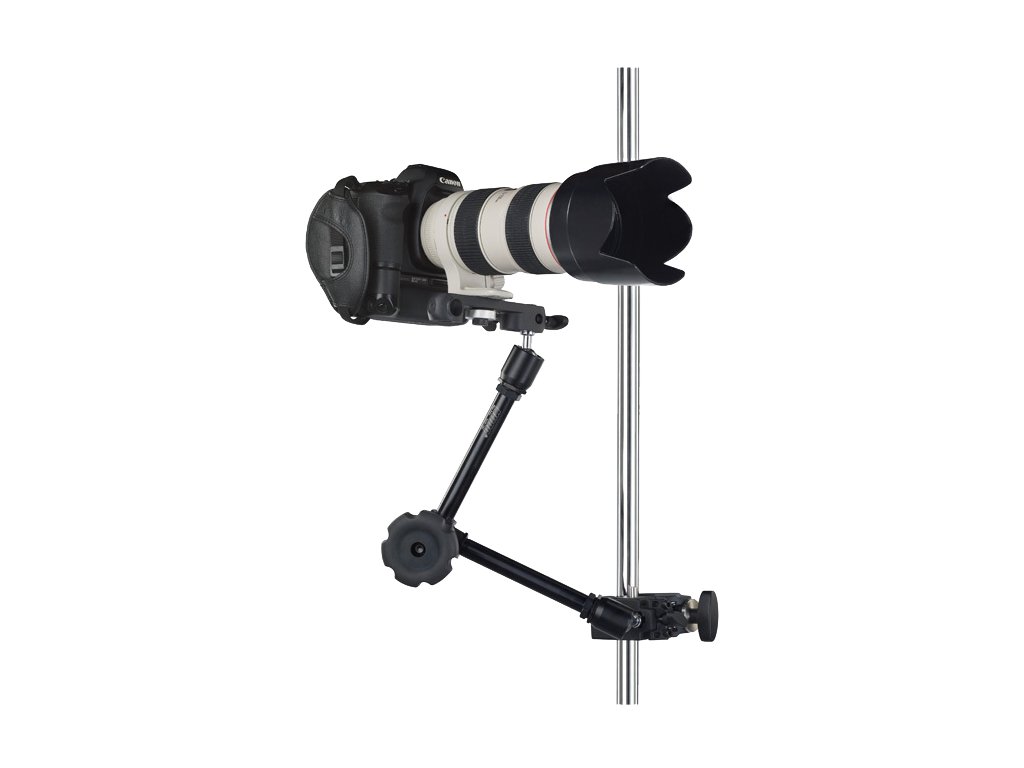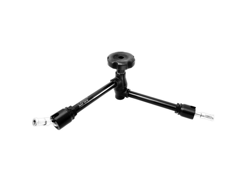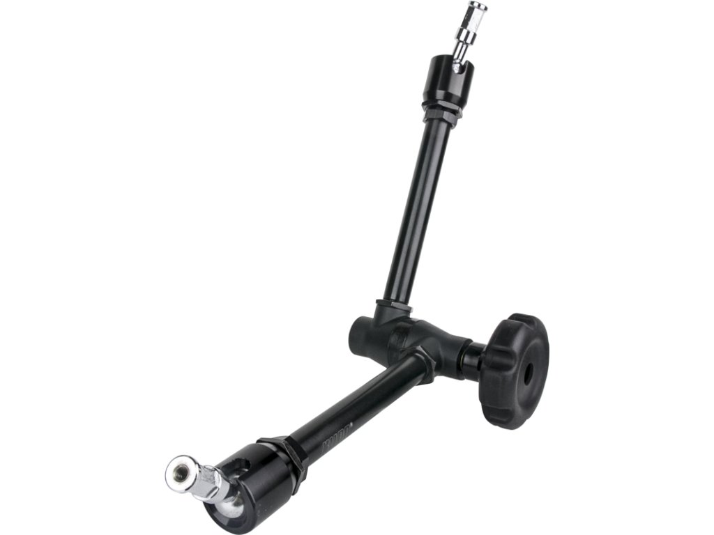 Dva čepy 5/8" (16 mm) na obou koncích jsou připevněny ke kulovým spojům, které se otáčejí o 360 stupňů, navíc výřez v objímce kolem spoje umožňuje ohnutí čepu do úhlu 90 stupňů. Jeden čep je určený pro závit 3/8"-16, zatímco druhý pro závit 1/4"-20. Oba čepy mají šest vyfrézovaných plochých ploch, takže ať k ramenu Max Arm namontujete cokoli, nebude se to otáčet. Centrální koleno se otáčí o 360 stupňů, a nabízí tak nekonečné možnosti nastavení.Rameno Max Arm je vybaveno speciálními třecími disky s protiskluzovými rozetami, které zabraňují nežádoucímu pohybu. Velké pogumované ruční kolečko pomalu zvyšuje napětí, dokud se neuzamknou všechny tři spoje najednou – přesné nastavení je tak dílem okamžiku. Podpora zátěže až 4 kg Černý povrch z hliníkuNastavitelné rameno umožňuje polohování instalace fotografického osvětlení nebo příslušenství během několika sekundPodpora zátěže až 4 kgVelké pogumované ruční kolečko umožňuje uzamknutí spojů zároveň pro přesné nastaveníŠest plochých vyfrézovaných povrchů pro bezpečnou montážOmezená dvouletá zárukaDoplňkové parametry