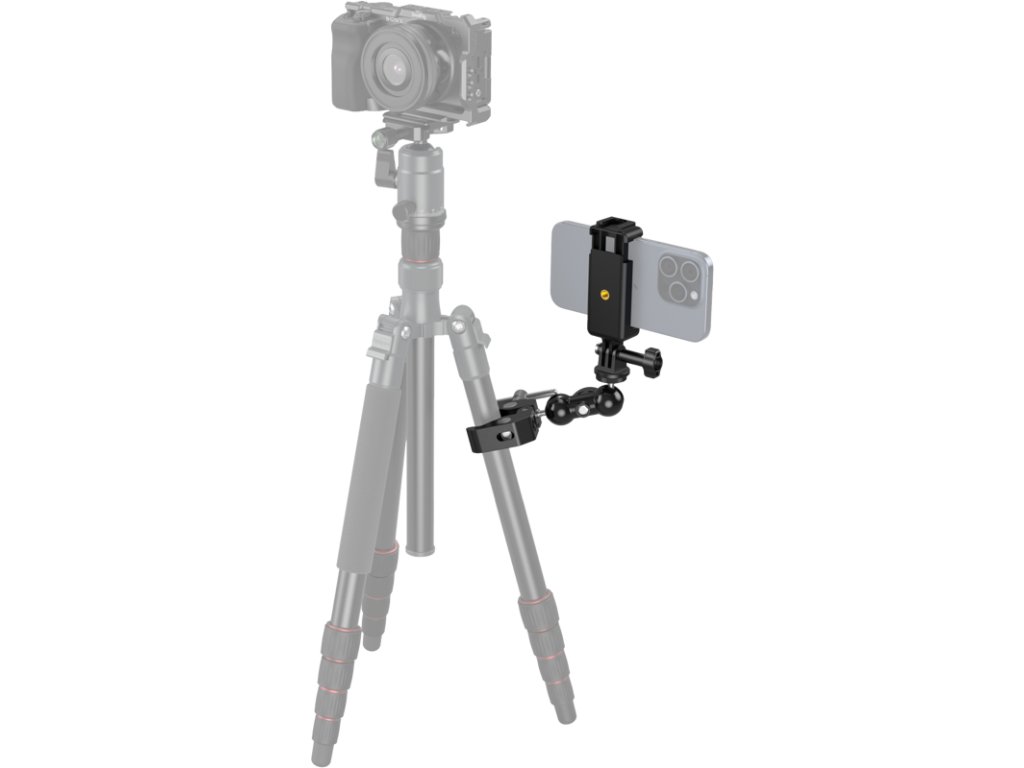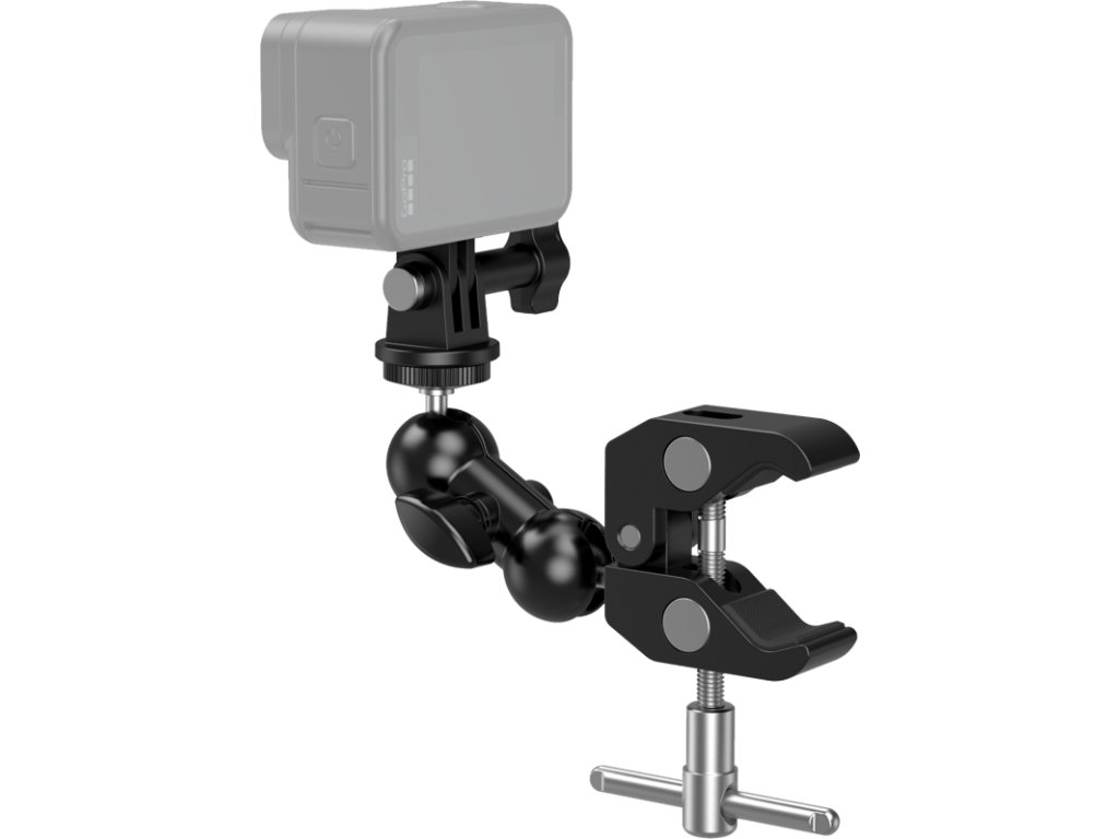 Souprava Super Clamp Kit ve tvaru kraba s kulovou hlavou a ramenem Magic Arm (SmallRig 4373)Kulová hlava je vybavena protiskluzovými závity pro pevné zajištění.Konstrukce proti zkroucení pevně upevňuje kouzelné rameno kulové hlavy ke svorce ve tvaru kraba, aby se při pohybu neuvolnilo ani nespadlo.Svorka se otevírá až na šířku 54 mm a je kompatibilní s DJI Ronin, FREEFLY MOVI Pro a jakýmikoliv 30mm tyčemi se snadným nastavením pomocí knoflíku.Svorka je osazena podložkami, které účinně chrání upínaný předmět a zvyšují stabilitu upnutí.Celou sadu lze použít s přiloženým držákem pro akční kameru k přizpůsobení klece SmallRig GoPro Hero Cage 3084 a 3083, rámu pro Insta360 X3 4088 a klece pro DJI Osmo Action 4119.Držák telefonu podporuje chytré telefony o šířce 56-86 mm a tloušťce maximálně 9 mm.Poznámka:Nosnost 1,5 kgBalení obsahuje:1x svorka ve tvaru kraba1x kouzelné rameno s kulovou hlavou1x držák telefonu1x držák pro akční kameruDoplňkové parametry