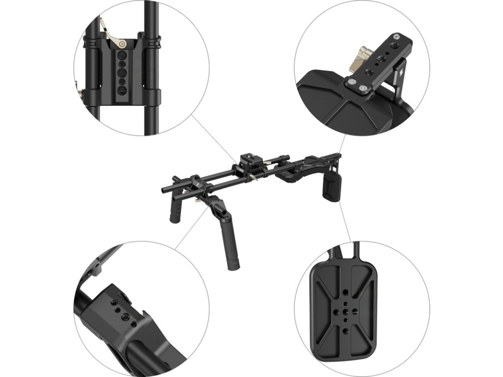 Navrženo tak, aby poskytovalo pohodlné řešení pro střelbu přes rameno. Díky univerzálnímu systému 15mm dvojité tyče jej lze přizpůsobit různým specifikacím fotoaparátů.