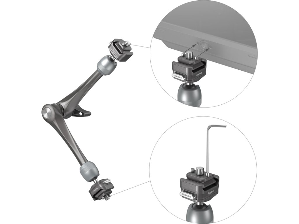 SmallRig 4489 HawkLock H21 Quick Release Rosette Magic Arm (11")HawkLock - nová definice rychlého uvolnění!"HawklLock" ekosystém rychlého uvolnění poskytuje uživatelům rychlejší, bezpečnější a vysoce kompatibilní zážitek.Tento systém, vybavený technologií polohování rolovacích kolíků, přetváří oblast rychloupínání průlomovým debutem!Nově navržená konstrukce zámku rozety pro plynulejší nastavení úhlu.Obousměrný posuv s automatickým samočinným zajištěním po dosažení polohy, díky němuž je montáž zařízení bezproblémová a šetří čas.Při použití s odnímatelnými kolíky ve spojení s klecemi pro kamery SmallRig 4119, 3084, 4088 a dalšími monitory s odpovídajícími polohovacími otvory účinně zabraňuje vychýlení zařízení a zajišťuje bezpečnost vašeho vybavení.Kulová hlava nabízí nastavení v rozsahu 360 stupňů, což zajišťuje plynulý a flexibilní pohyb bez skladování.Spirálové vzory na kulové hlavě zvyšují tření a unesou až 3kg zátěž.Do rozetového kloubu z nerezové oceli byla přidána pružina pro plynulejší nastavení úhlu.Protiskluzová konstrukce páky s palcem obsahuje axiální ložiska pro pohodlný a ergonomický úchop a umožňuje snadné uzamčení magického ramene a kulové hlavy jediným stisknutím.Jednotka je vyrobena na CNC strojích pro zajištění odolnosti a obsahuje polstrování na obou držácích, které zabraňuje poškrábání zařízení.Balení obsahuje:1x rychloupínací rameno rozety1x imbusový klíčDoplňkové parametry