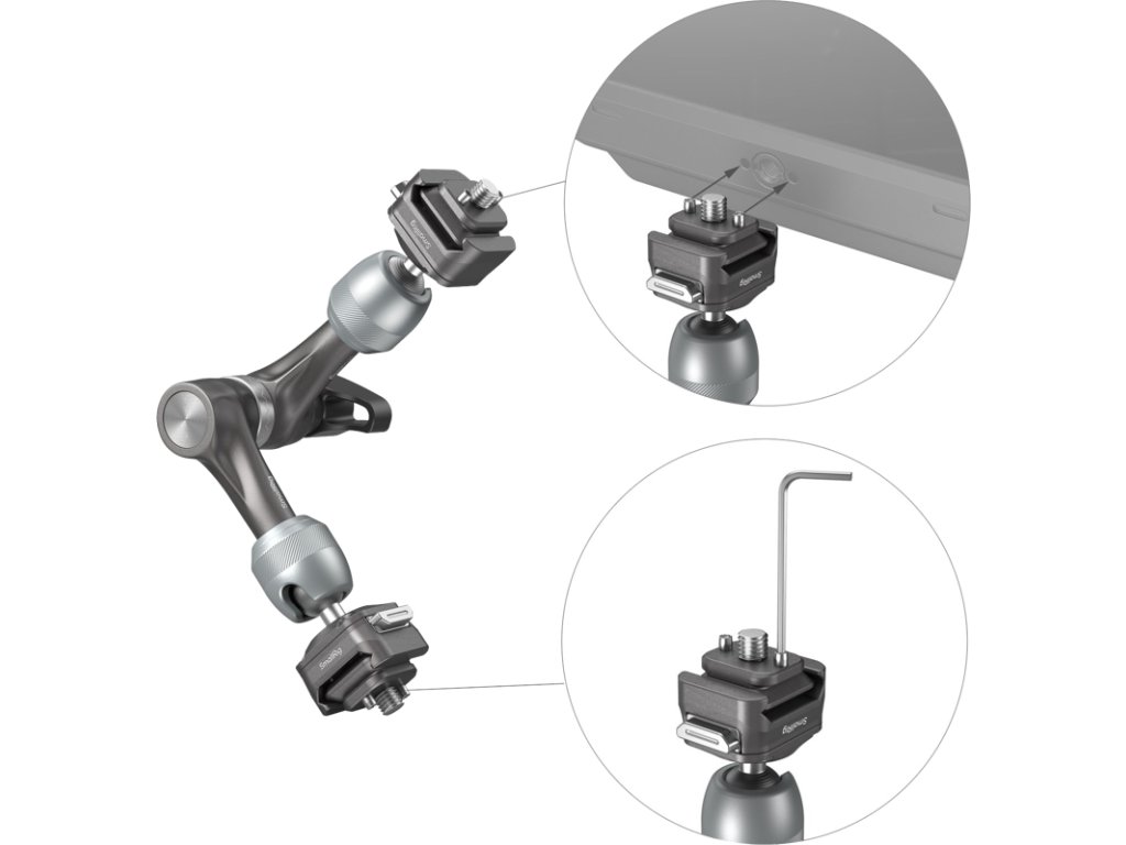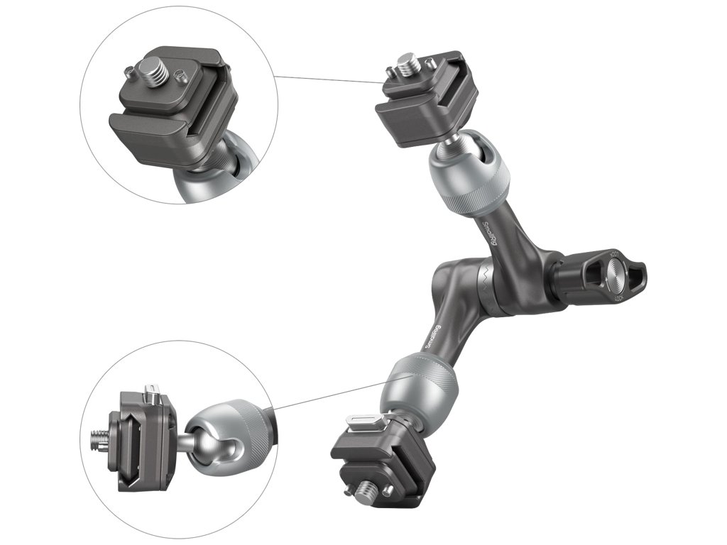 SmallRig 4490 HawkLock H21 Quick Release Rosette Magic Arm (7")HawkLock - nová definice rychlého uvolnění!Ekosystém rychlého uvolnění "HawklLock" poskytuje uživatelům rychlejší, bezpečnější a vysoce kompatibilní zážitek.Tento systém, vybavený technologií polohování rolovacích kolíků, přetváří oblast rychloupínání průlomovým debutem!Nově navržená konstrukce zámku rozety pro plynulejší nastavení úhlu.Obousměrný posuv s automatickým samočinným zajištěním po dosažení polohy, díky němuž je montáž zařízení bezproblémová a šetří čas.Při použití s odnímatelnými kolíky ve spojení s klecemi pro kamery SmallRig 4119, 3084, 4088 a dalšími monitory s odpovídajícími polohovacími otvory účinně zabraňuje vychýlení zařízení a zajišťuje bezpečnost vašeho vybavení.Kulová hlava nabízí nastavení v rozsahu 360 stupňů, což zajišťuje plynulý a flexibilní pohyb bez skladování.Spirálové vzory na kulové hlavě zvyšují tření a unesou až 3kg zátěž.Do rozetového kloubu z nerezové oceli byla přidána pružina pro plynulejší nastavení úhlu.Protiskluzová konstrukce páky s palcem obsahuje axiální ložiska pro pohodlný a ergonomický úchop a umožňuje snadné uzamčení magického ramene a kulové hlavy jediným stisknutím.Jednotka je vyrobena na CNC strojích pro zajištění odolnosti a obsahuje polstrování na obou držácích, které zabraňuje poškrábání zařízení.Balení obsahuje:1x rychloupínací rameno rozety1x imbusový klíčDoplňkové parametry