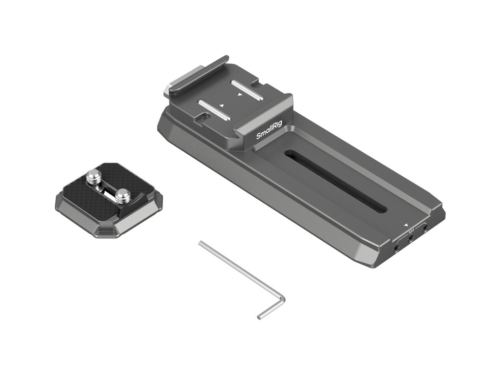 SmallRig 4638 HawkLock H38 Manfrotto Quick Release Plate pro stabilizátory DJIVnitřní rychloupínací základová deska Arca-Swiss má nastavitelnou protiskluzovou konstrukci.Usnadňuje rychlou instalaci klece SmallRig 4481 a ve spodní části obsahuje ozubenou lištu pro přesné nastavení posuvu zepředu dozadu.Kompatibilita:DJI RS 2DJI RSC 2DJI RS 3DJI RS 3 ProDJI RS 4DJI RS 4 ProBalení obsahuje:1x rychloupínací destička Manfrotto1x rychloupínací destička Arca-Swiss1x imbusový klíčDoplňkové parametry
