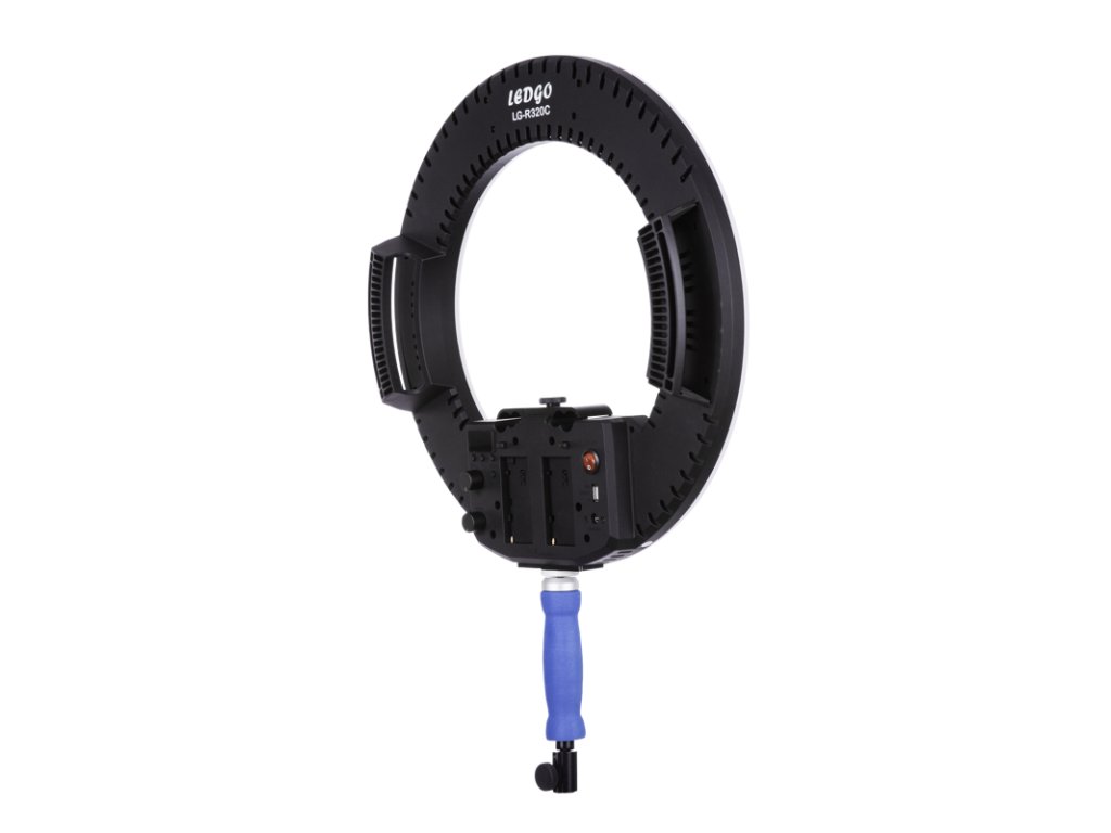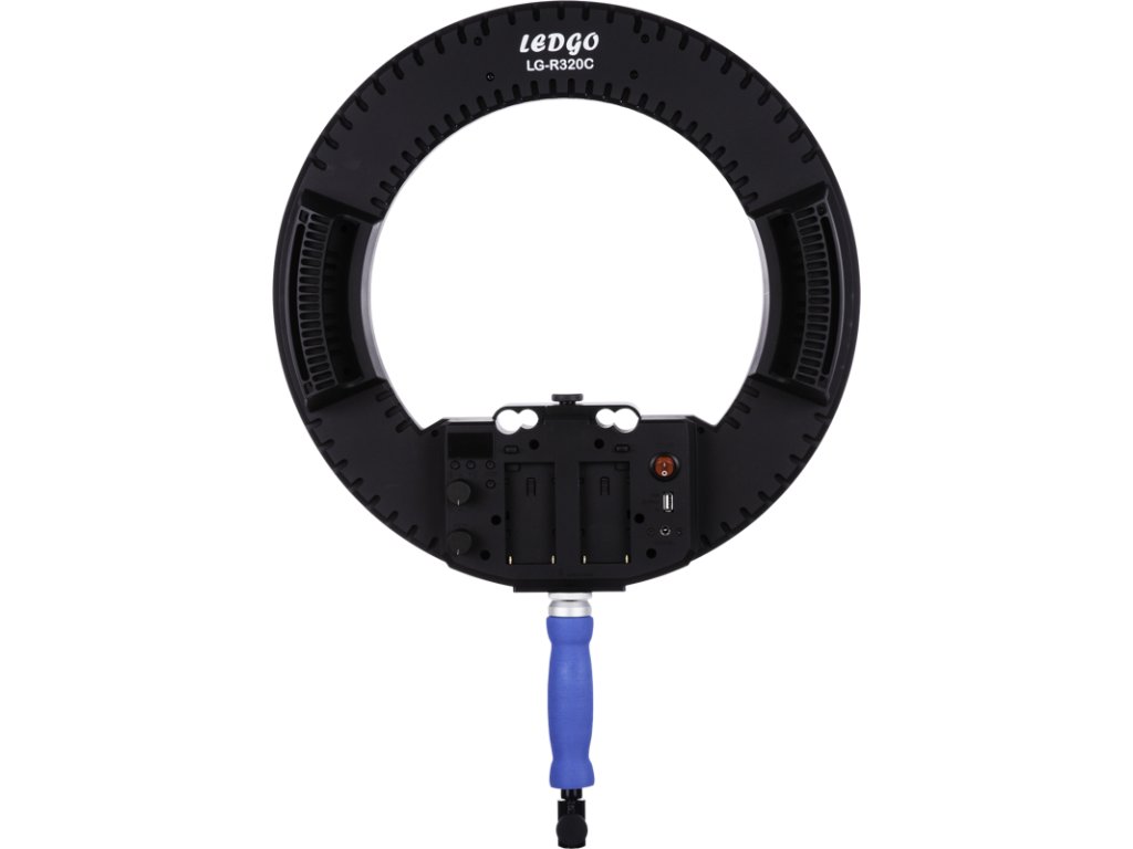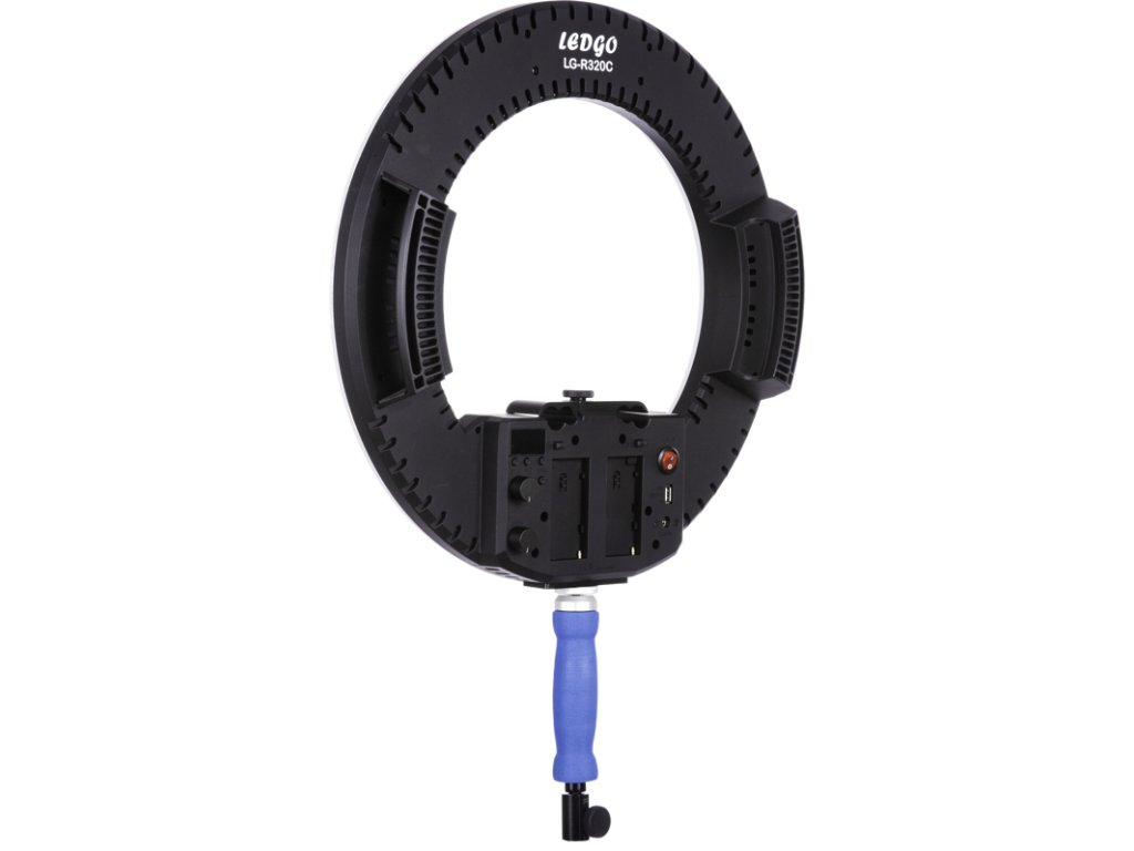 LEDGO LG-R320C 32W dvoubarevné ultra-měkké LED kruhové světloKruhové LED světlo navržené pro vložení kolem objektivu. Světelné články jsou pokryto poloprůhlednou difuzní deskou, který spolu s kruhovitým tvarem poskytuje měkké světlo téměř beze stínů. Součástí je lištička držáku pro připojení Ledgo LG-R320C na stativovou přípojku fotoaparátu. Také pomáhá ke přizpůsobení světla konkrétnímu objektivu. Úchytky na obou stranách zjednodušují manipulaci.Tlumící a dvoubarevnéPomocí 32W LED panelů může LG-R320C produkovat silné světlo s maximálním jasem 2193 lumenů. Ovladač tlumení umožňuje plynulé ovládání jasu bez blikání, zatímco vysoký index podání barev (CRI, RA > 95) u Ledgo znamená přirozenou reprodukci odstínů pleti a dalších barev. Teplota chromatičnosti je nastavitelná mezi 3200 K a 5600 K, konkrétní nastavení jasu i teploty lze sledovat na obrazovce na zadní straně.Baterie nebo AC napájeníLedgo LG-R320C lze napájet buďto ze sítě pomocí přibaleného AC adaptéru nebo připojením dvou dobíjecích baterií pro videokamery (Sony NP-F750 / 970, příslušenství). Také podporuje Ledgo 2,4 G Wi-Fi ovládací jednotka (příslušenství), které umožňuje lampu ovládat bezdrátově pomocí chytrého telefonu nebo tabletu (je k dispozici aplikace pro iOS i Android).Doplňkové parametry