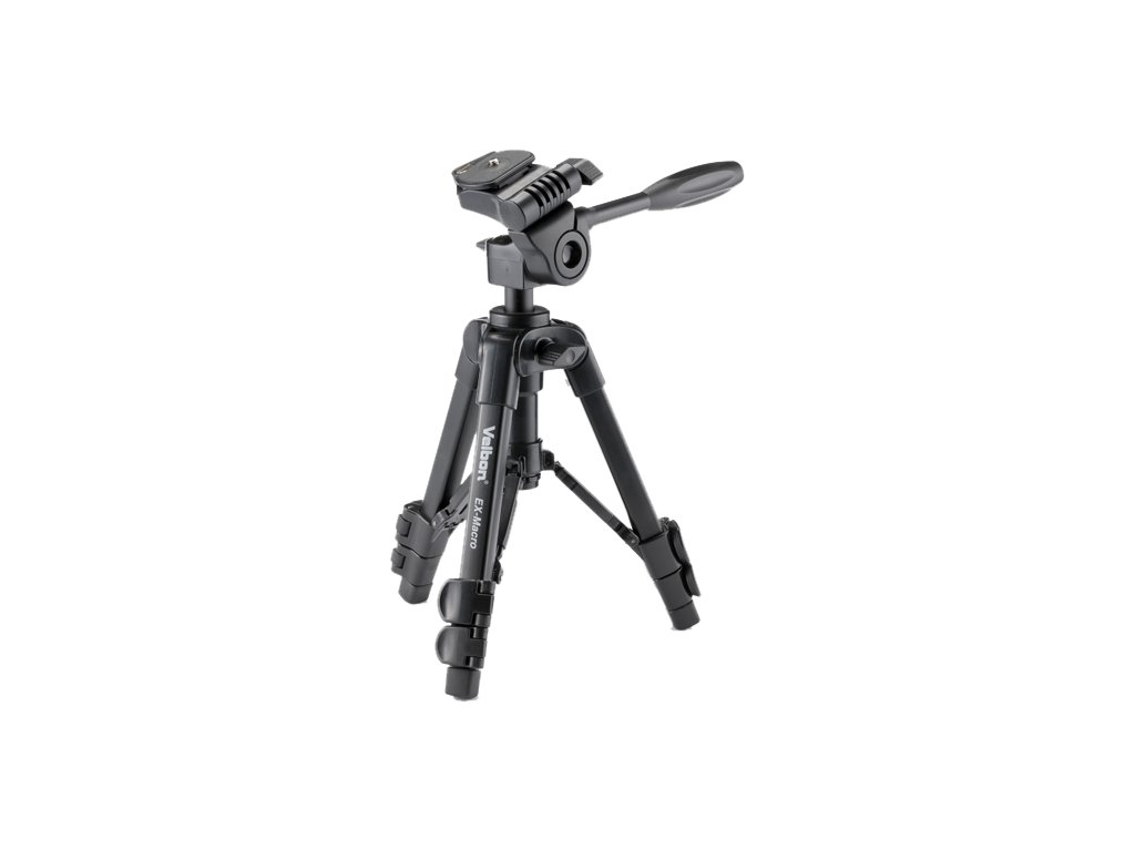 EX-Macro je stolní mini stativ s pevnou konstrukcí. Součástí stativu je hlava, která se běžně dodává se stativy vyšších tříd.Díky maximální výšce 56,3 cm a minimální výšce 20,3 cm je možné tento stativ využít v mnoha situacích, a to včetně tvorby makrofotografií . Tento stativ se hodí jak na práci ve studiu, tak i v terénu.Stativy EX se vyznačují novým, čtvercovým profilem nohou , který zajišťuje větší stabilitu, novými lehčími materiály (odlehčený hliník v kombinaci s kvalitními plastovými díly) a novými, konstrukčně bezpečnějšími svorkami. Mezi hlavní vlastnosti stativu Velbon EX-Macro patří vynikající stabilita, kvalita použitých materiálů a praktické a rychlé ovládání výšky a pracovní polohy . Radiální vzpěry mezi nohami a středovou tyčí zvyšují celkovou stabilitu stativu. Součástí balení stativu je také přepravní pouzdro. Kvalitou použitých materiálů a výrobního procesu se stativy série EX řadí v dané cenové kategorii mezi špičku na trhu. Stativ EX-Macro je vhodný pro použití s kompaktními fotoaparáty, bezzrcadlovkami a menšími zrcadlovkami s celkovou hmotností do 1,5 kg. Japonská společnost Velbon vyrábí stativy a příslušenství pro foto a video již od roku 1955! Klíčové vlastnosti: -Hliníkové nohy s čtvercovým profilem-Tělo stativu, hlava a svorky jsou vyrobeny z kvalitního tvrzeného plastu-Perfektní stabilita-Nohy se skládají ze 3 sekcí-Nové bezpečnější uzamykací svorky-3osá hlava-Radiální vzpěry mezi nohami a středovou tyčí pro zajištění větší stability-Koncovky nohou: protiskluzové paty vyrobené z tvrzené gumy tlumí nežádoucí otřesy-Černá barva v matném provedení-Brašna součástí balení-Bezkonkurenční poměr cena/výkon Technické parametry: -Maximální výška: 56.3 cm-Výška: 50.6 cm-Minimální výška: 20.3 cm-Délka středové tyče: 5.7 cm-Výška ve složeném stavu: 28.1 cm-Hmotnost těla stativu: 0.58 kg-Doporučená nosnost: 1.5 kg-Maximální nosnost: 2.5 kg-Průměr první sekce nohy: 17 mm-Počet sekcí: 3-Hlava – 3-osá-Rychloupínací destička: QB-32 (Mini-D)-Upínací plocha: 4.3 x 2.8 mmDoplňkové parametry