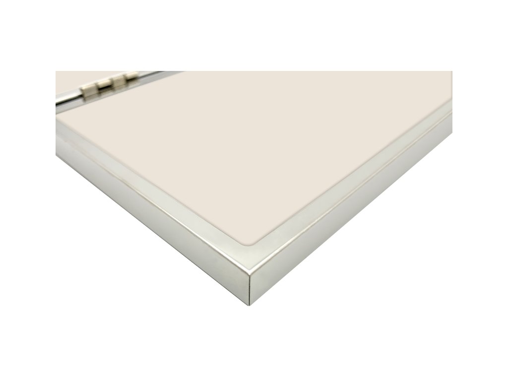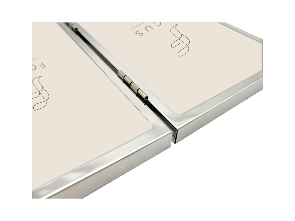Dvojitý rámeček je ohraničen stříbrným kovovým okrajem, který dodává sofistikovanost. Díky tomuto modernímu zrcadlově leštěnému kovovému lemování je rámeček vhodný jak do světlých, vzdušných interiérů, tak do elegantnějších, jednobarevných prostředí.Iris obsahuje přední stranu ze skutečného skla, která chrání váš obraz s vysokou čistotou a odolností. Rámeček je kromě možnosti zavěšení na zeď vybaven rozkládací podpěrou pro vertikální nebo horizontální volně stojící zobrazení.Klíčové vlastnosti:Tenký kovový rámeček na dvě fotografieKovové okraje s vysokým leskem a stříbrnou barvou pro ostrý povrchRozměry profilu: 1,5 mm: Velikost písma: 5,4 mm na šířku | 10,6 mm do hloubkyPravá skleněná přední strana pro trvalou průhlednost a ochranuDefinice rámečku Iris je jednoduchá - ideální pro zvýraznění vašich oblíbených snímků, ať už stylizovaných v minimalistickém prostoru nebo v kombinaci s vrstveným dekorem.Doplňkové parametry