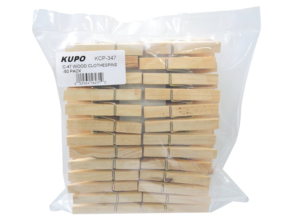 Kupo KCP-347 Wood C47 Spring-Type Clothspins (50 Pcs Per Bag)