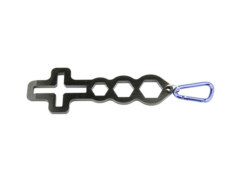 Nástroj je vyroben z uhlíkové oceli, takže je jak lehký, tak přenosný a splňuje potřeby profesionálního vybavení v oboru.Pro hexagonální šrouby M12, M10 a M8 ŠroubyŠroubovák pro 3× hexagonální šroub, 2× křídlovou matici, 2× stavěcí šroub, 1× přívěsek na klíče, 1× otvírák na lahve, 1× plochý šroubovákNezbytnost všech brašen s gripovým vybavením. Univerzální použití pro profesionální vybavení. Háček s pružinou se snadno připevňuje k opasku.Uhlíková ocelVelikost do dlaně, extrémně lehký, snadno se přenáší a skladujeDoplňkové parametry