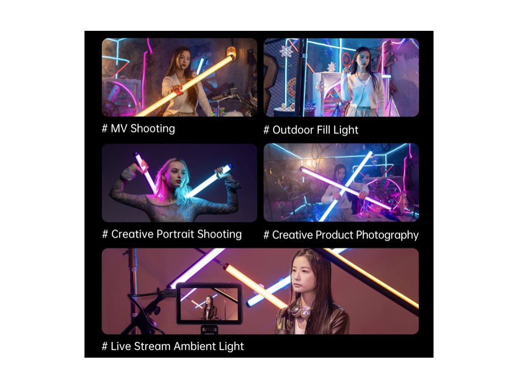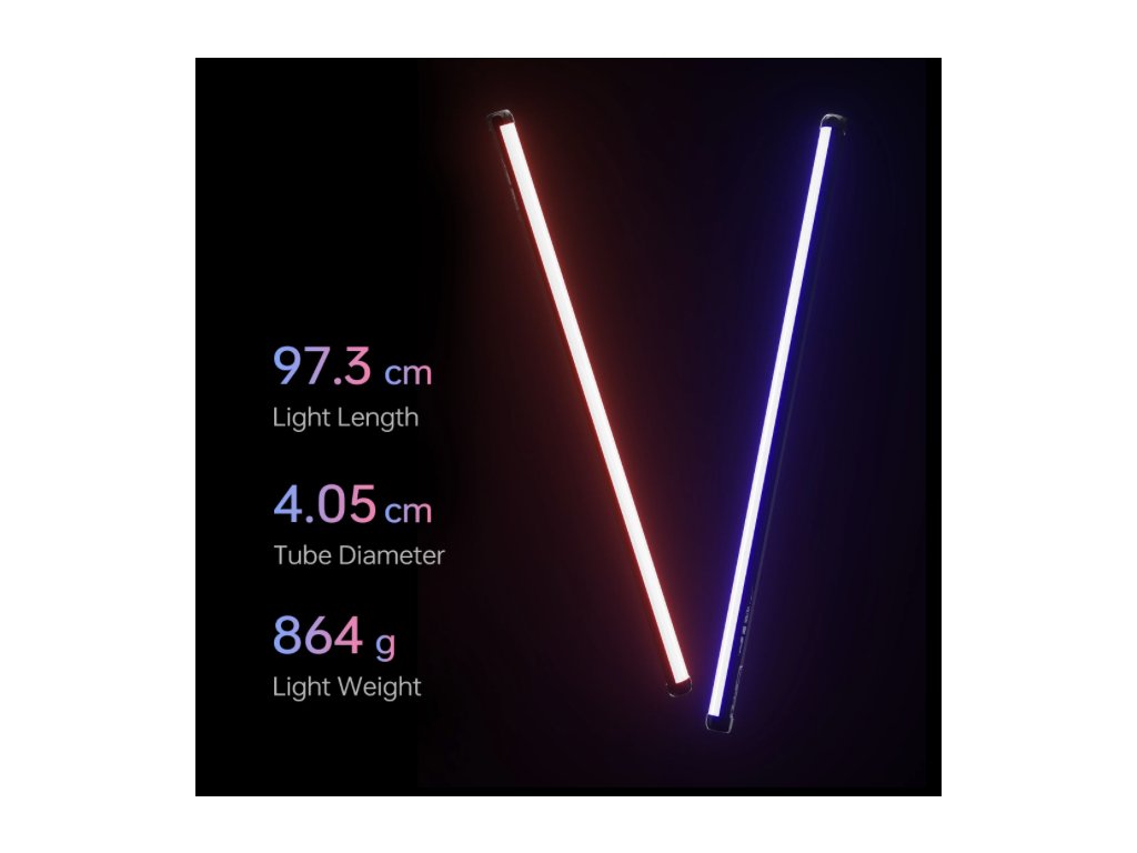 Duální sada světelných tyčí vám poskytuje dva plnohodnotné světelné zdroje, které výrazně zvyšují vaši kreativní flexibilitu. S hmotností pod 870 gramů a délkou do jednoho metru jsou tyče snadno přenosné a skladovatelné. 1/4" závity na obou koncích umožňují snadné připevnění na stativy a světelné stojany, zatímco magnetické úchyty poskytují rychlé a flexibilní umístění na kovových površích.